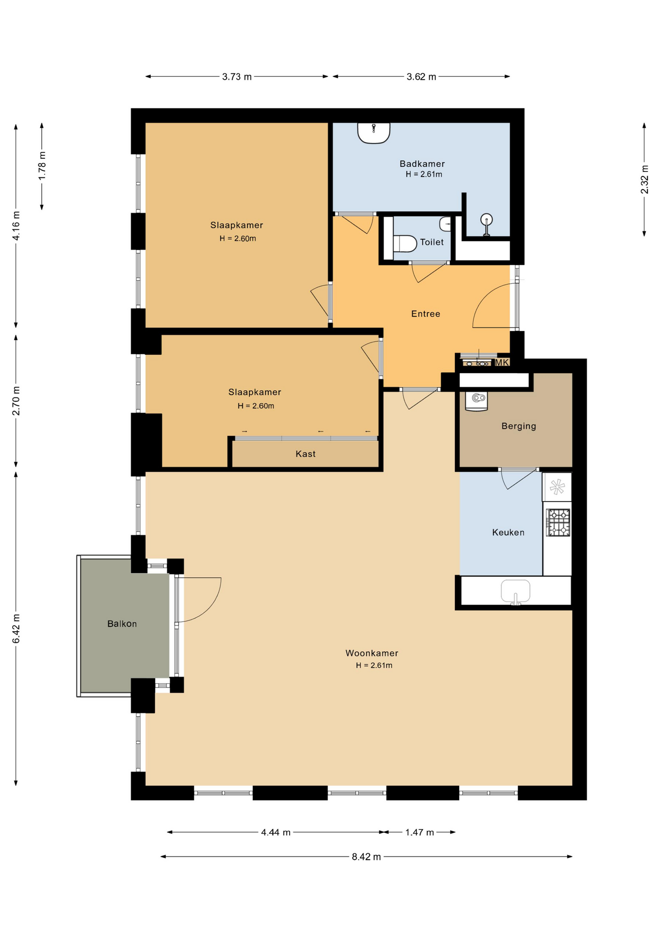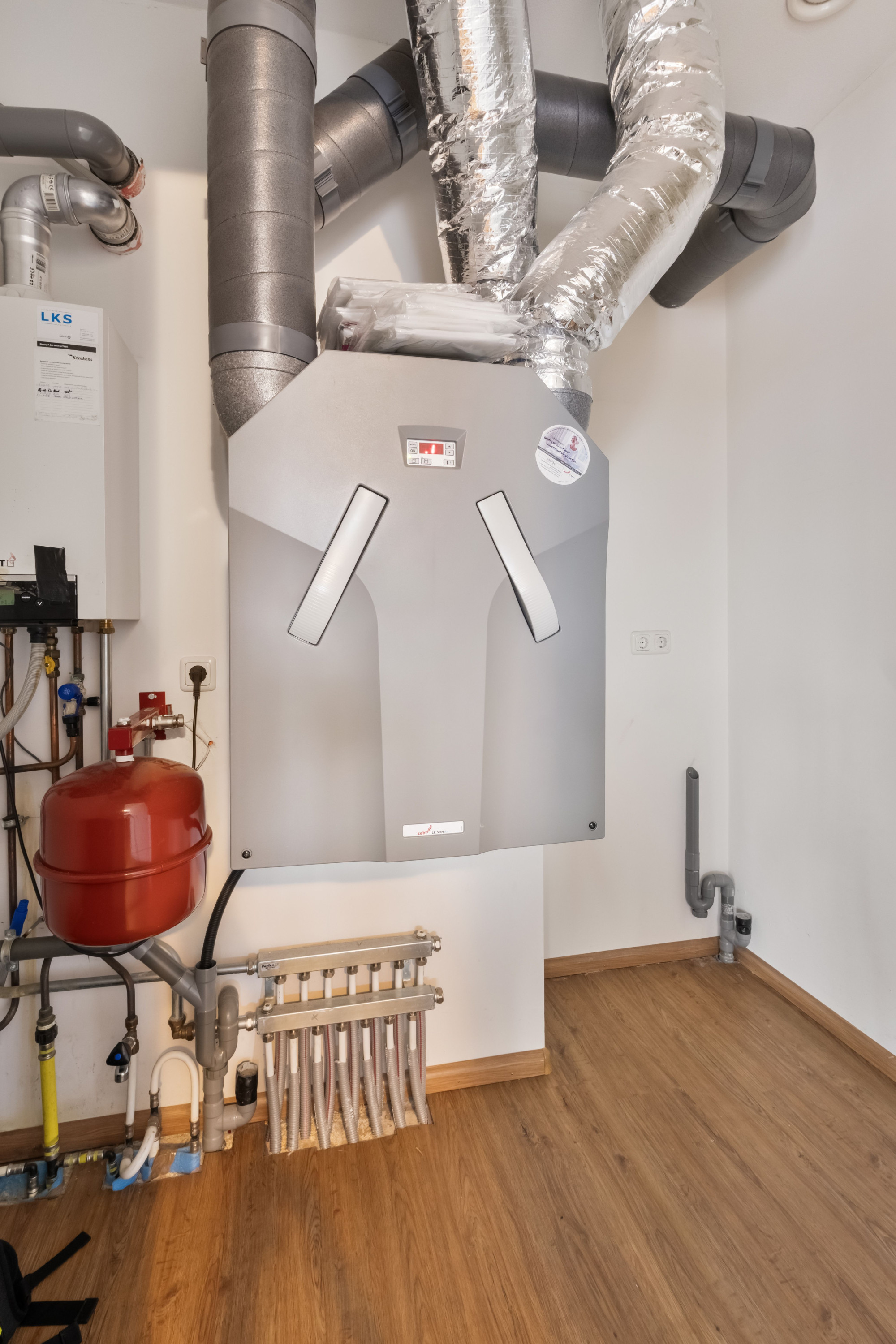 Via de keuken is er toegang tot een berging van circa 4 m2 waar zich het WTW-systeem en de cv-ketel (bouwjaar 2013) bevinden. De overige ruimte kan praktisch worden gebruikt als extra bergruimte. Vanuit de woonkamer bieden twee openslaande deuren toegang tot het balkon van circa 4,5 m2, waar je heerlijk kunt genieten van de buitenlucht.