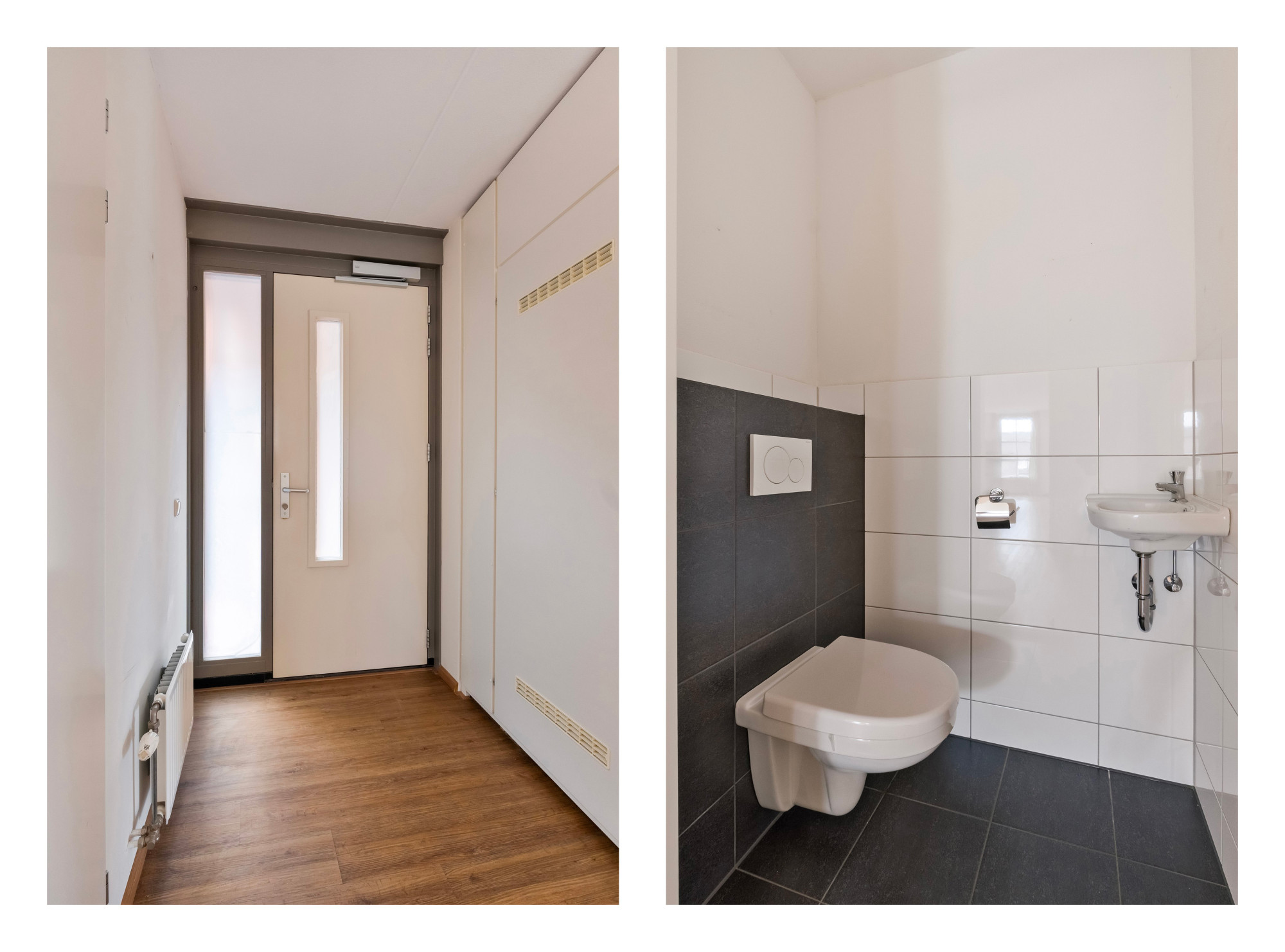 Via de hal is er toegang tot het toilet, de badkamer, twee slaapkamers en de woonkamer. In de hal bevindt zich tevens de meterkast. De laminaatvloer loopt door in de gehele woning, wat zorgt voor een mooie eenheid. De hal wordt verwarmd middels een radiator.