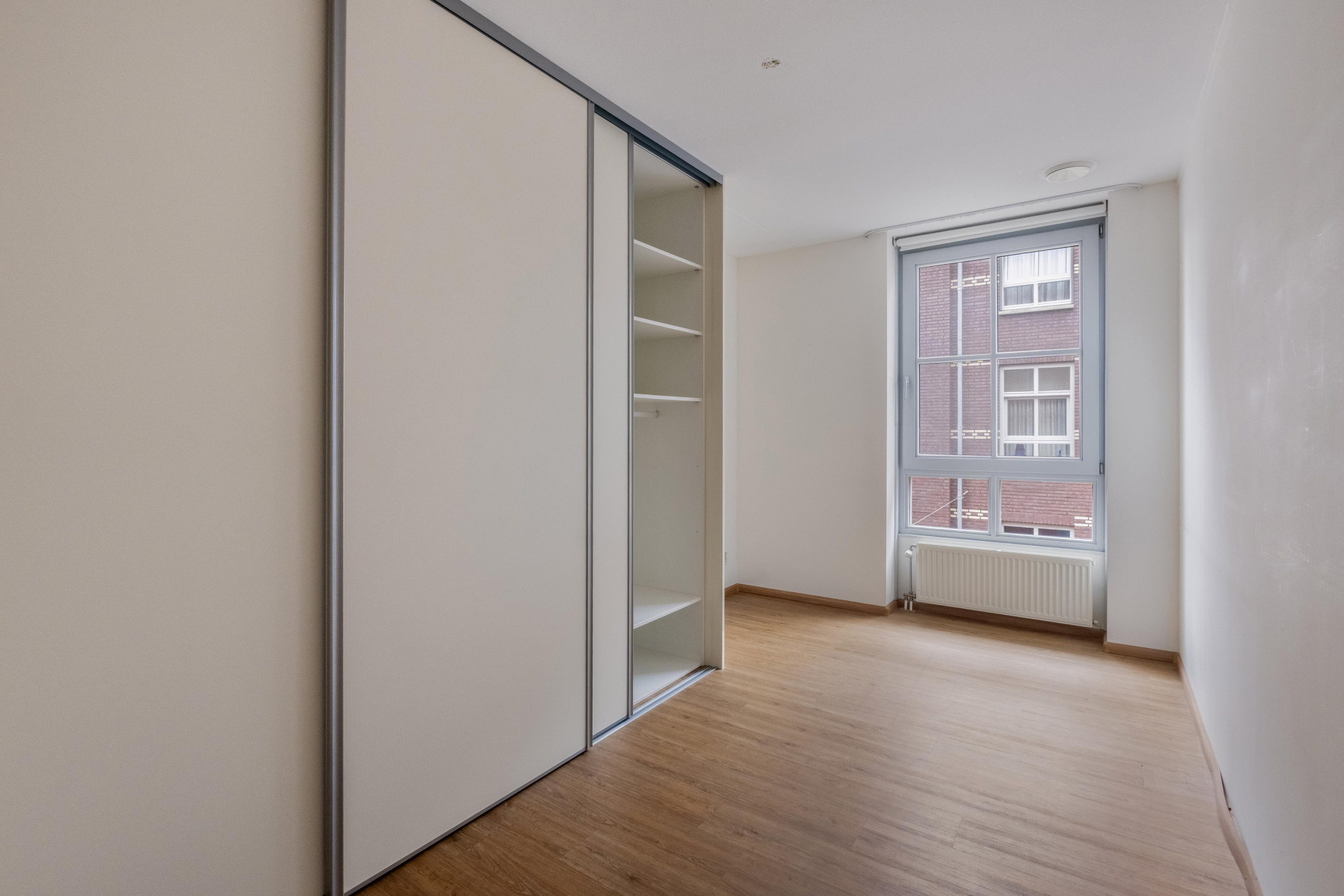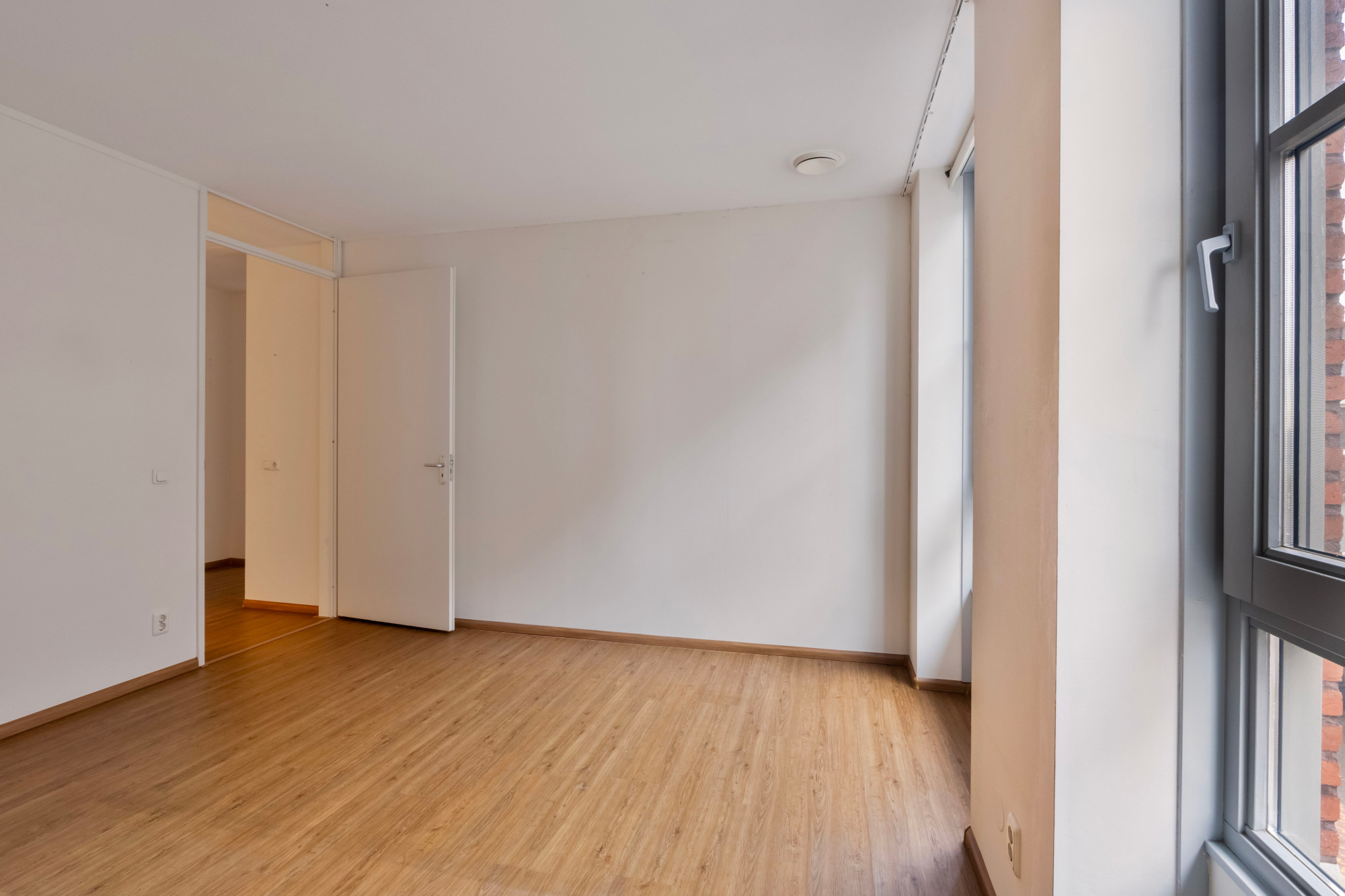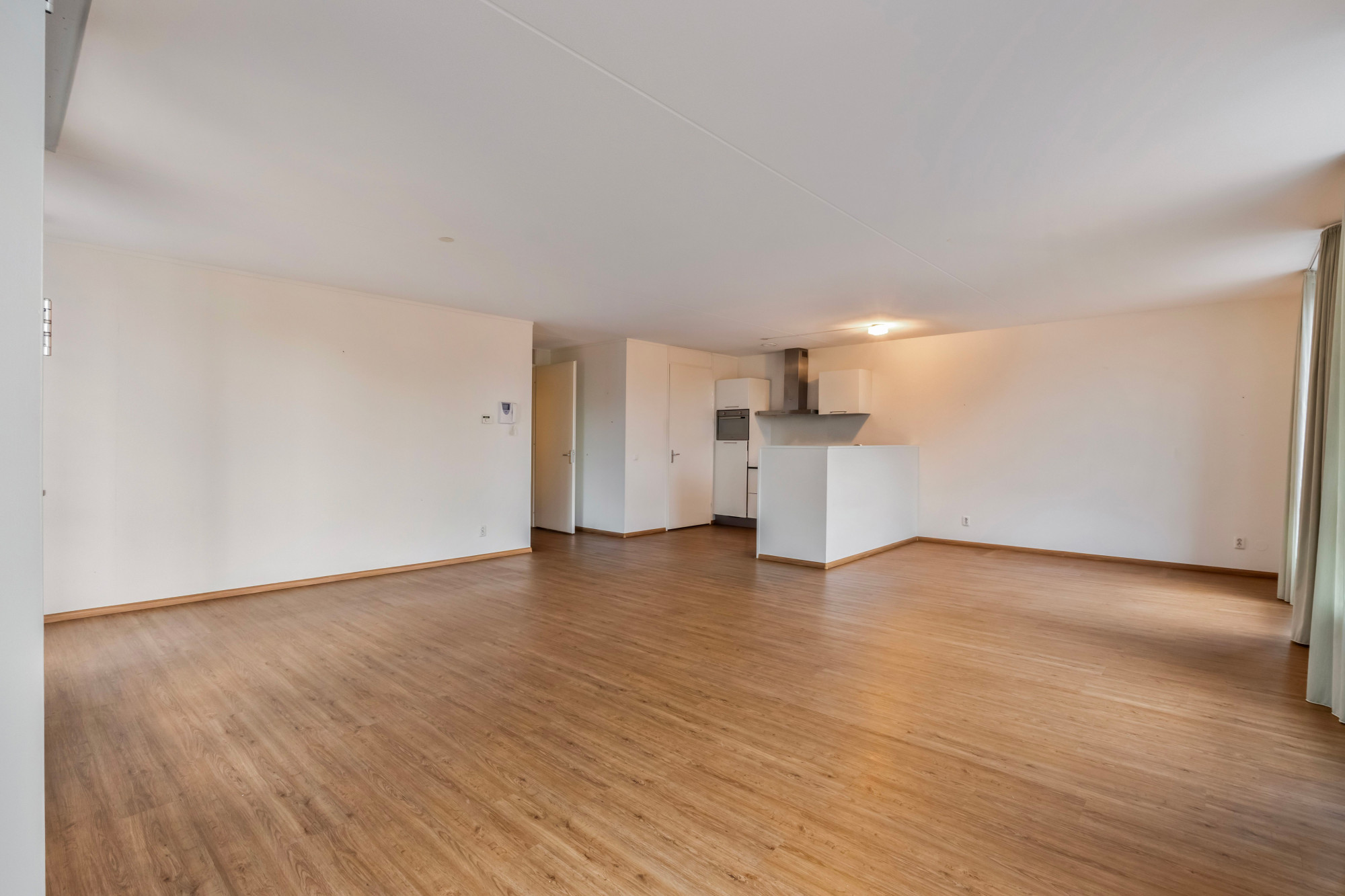De ruime en lichte woonkamer van circa 56 m2 beschikt over maar liefst vijf grote ramen met hardhouten kozijnen, dubbelglas en roedenverdeling, wat zorgt voor een karakteristieke uitstraling en veel natuurlijke lichtinval. In de woonkamer bevindt zich tevens de parlofooninstallatie voor toegang tot het gebouw. De laminaatvloer loopt ook hier naadloos door. De moderne open keuken is uitgerust met diverse inbouwapparatuur, waaronder een vaatwasser, combi-oven, afzuigkap en een 4-pits gasfornuis. Het keramische werkblad en de handmengkraan maken het geheel compleet. Er is bovendien voldoende opbergruimte aanwezig. In de keuken bevindt zich eveneens de afzuiging van het WTW-systeem, terwijl in de woonkamer de toevoer plaatsvindt.