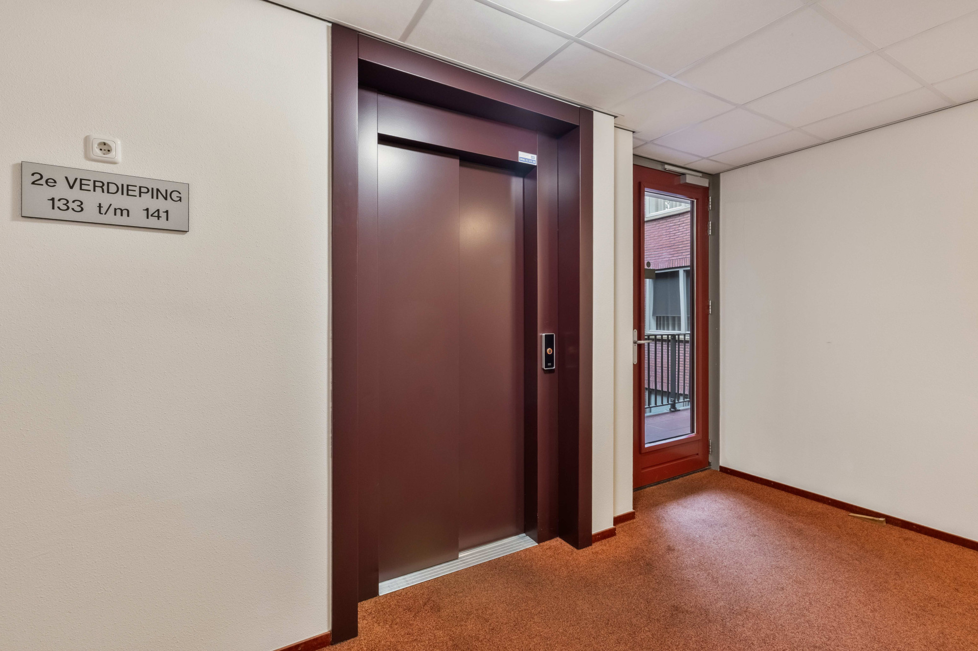 Centrale entree met hal, brievenbussen, bellentableau, trappenhuis en lift naar de verdiepingen.