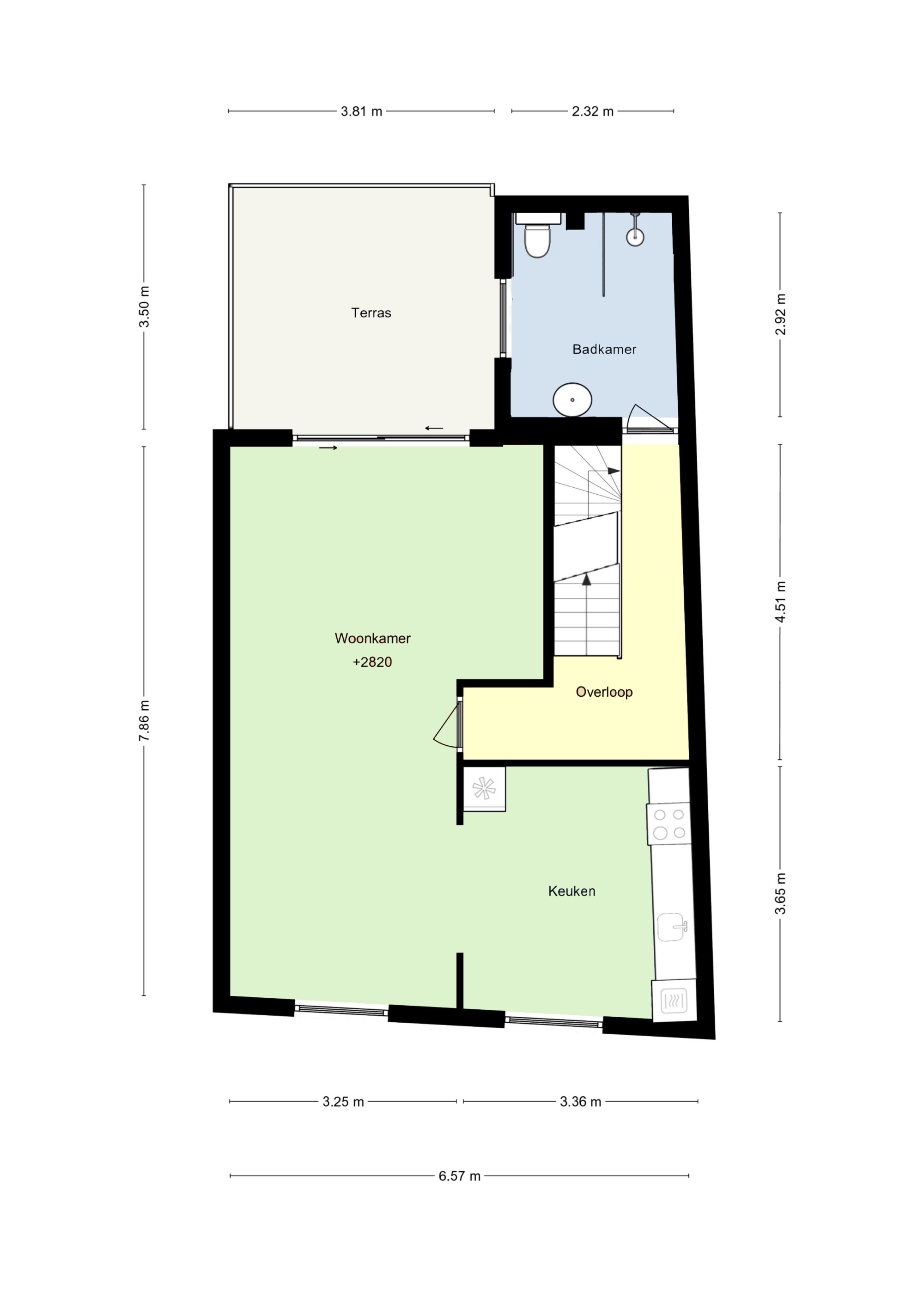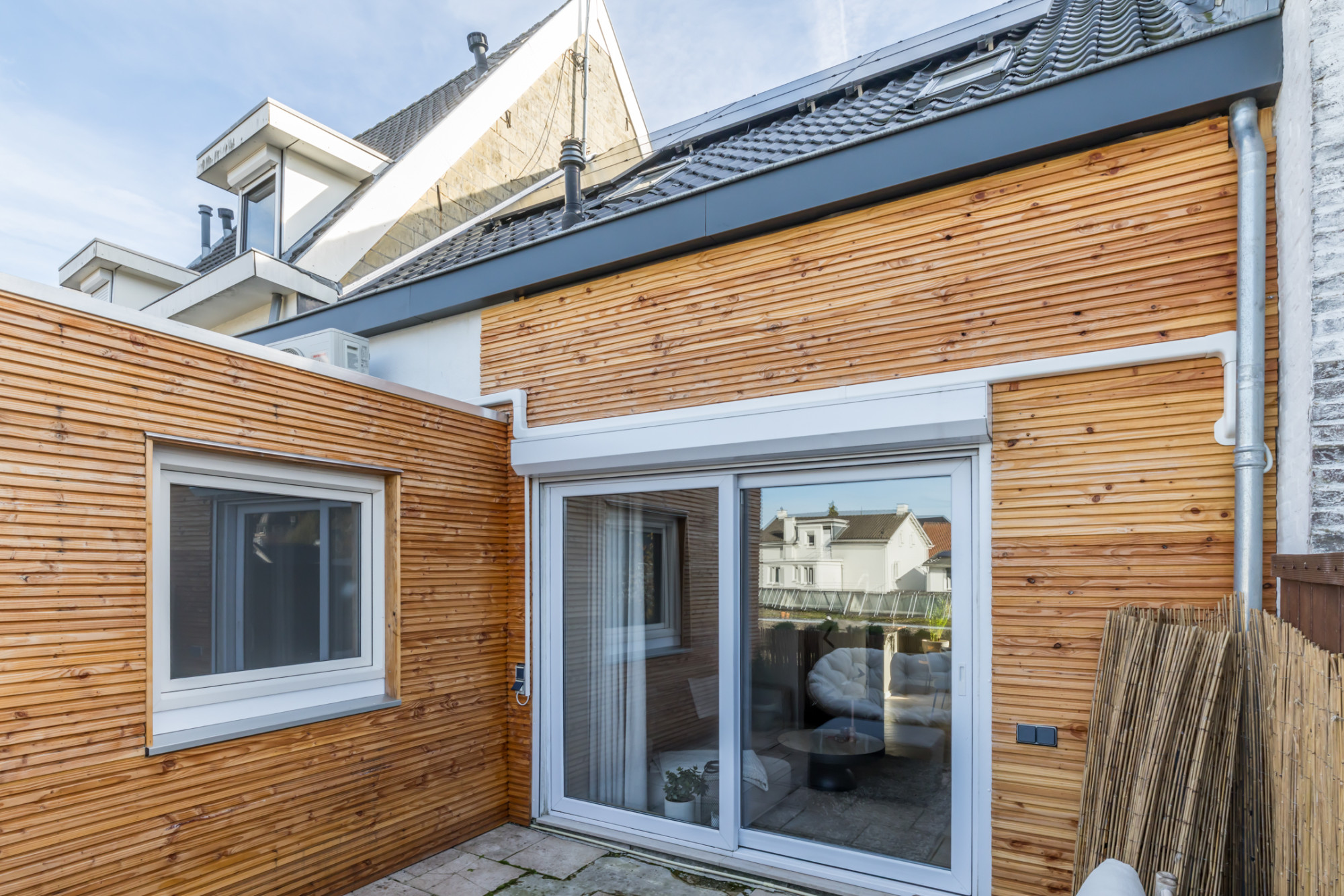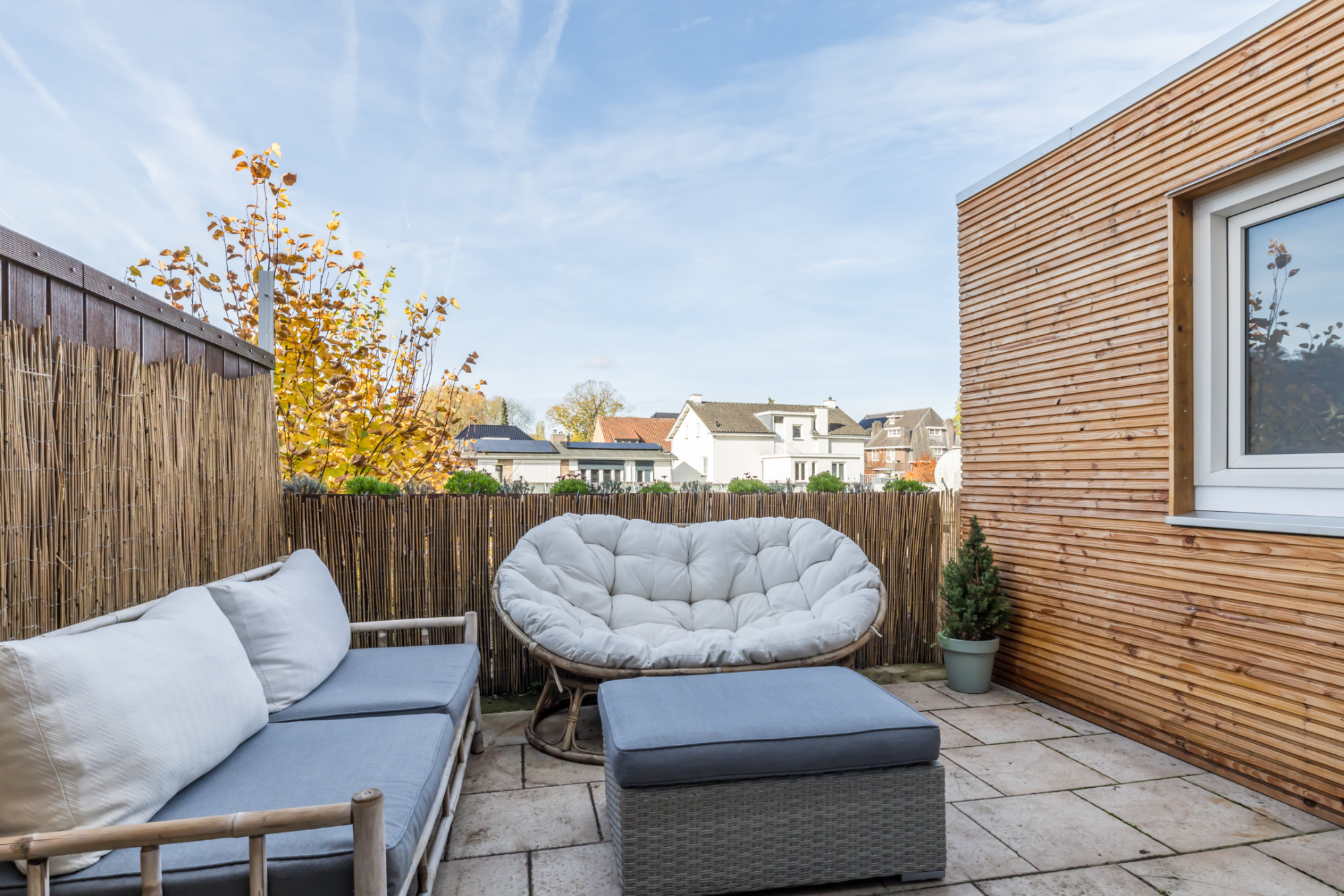 - dakterras met beklede buitengevelmuren, te bereiken via schuifpui met elektrisch rolluik