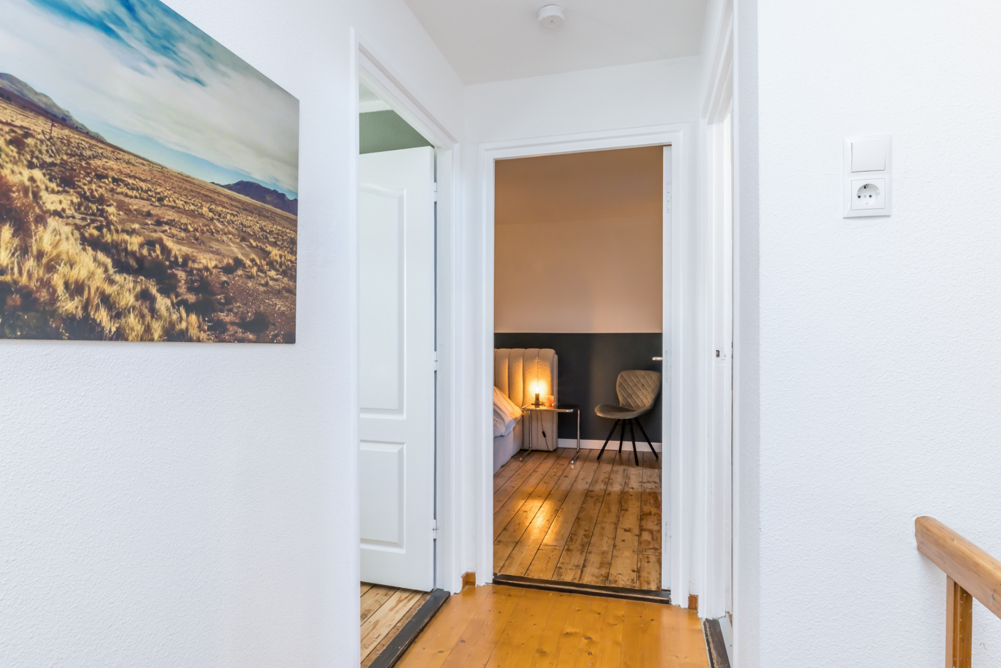 De slaapkamers zijn voorzien van originele planken vloeren.
