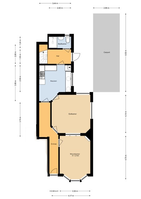 vrije achterom en carport welke is voorzien van een kantelpoort.