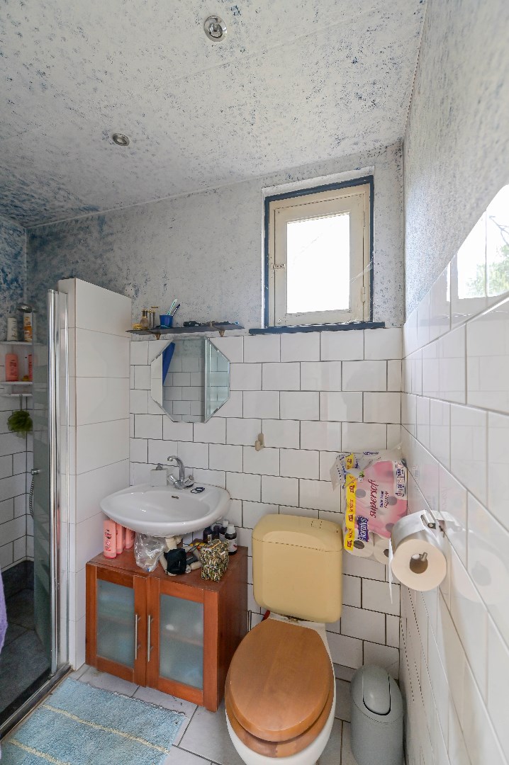 2de verdieping: overloop met 3 aangrenzende slaapkamers en eenvoudige badkamer welke is voorzien van een douche en wastafel met meubel.