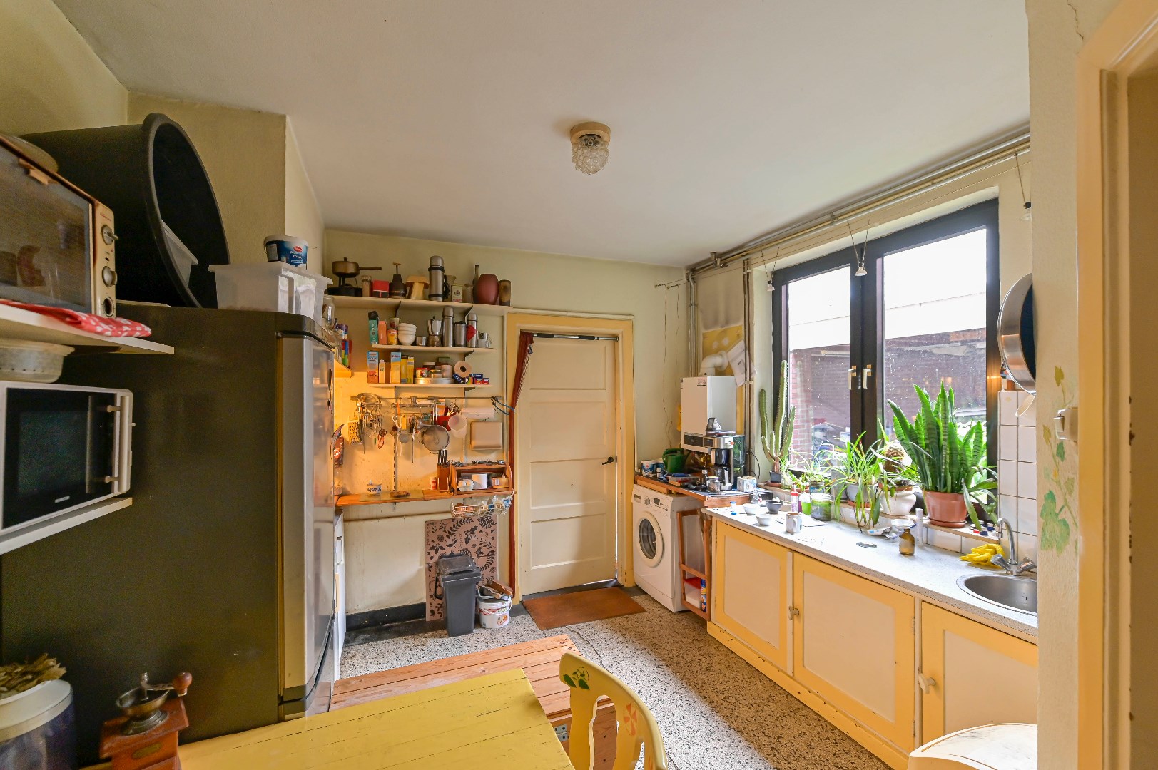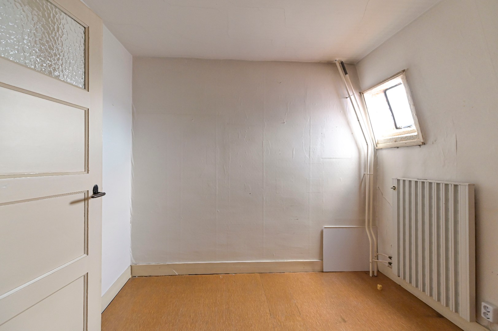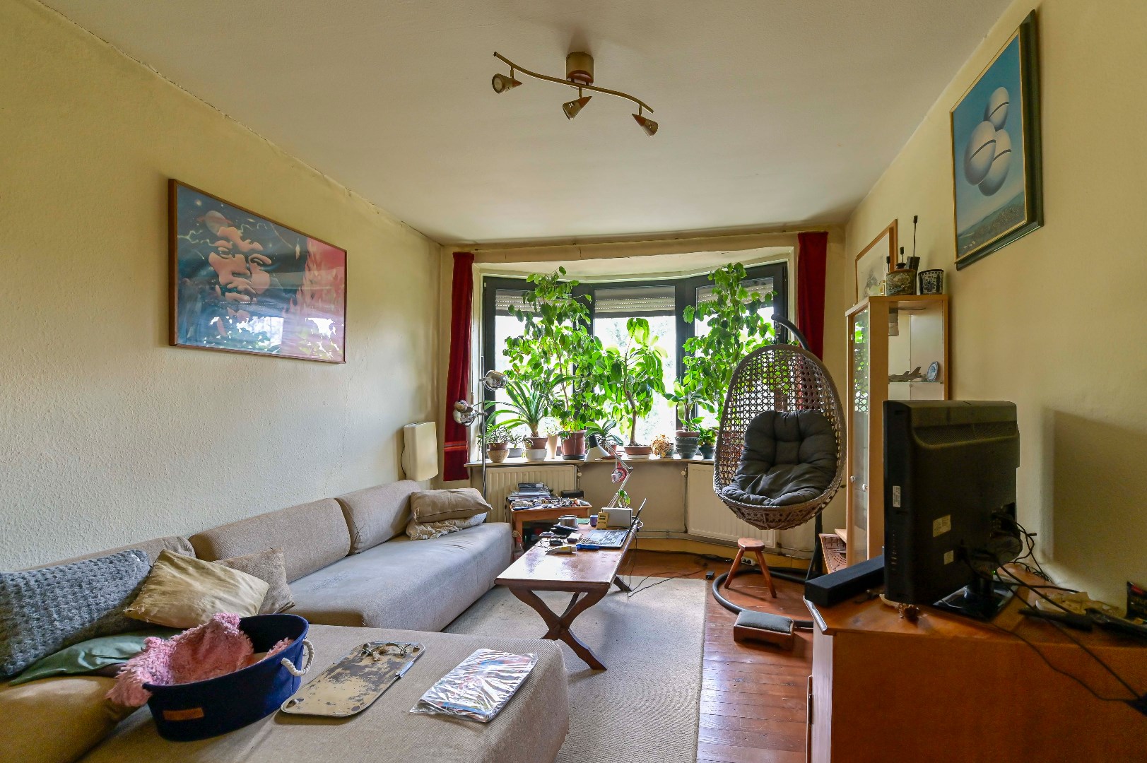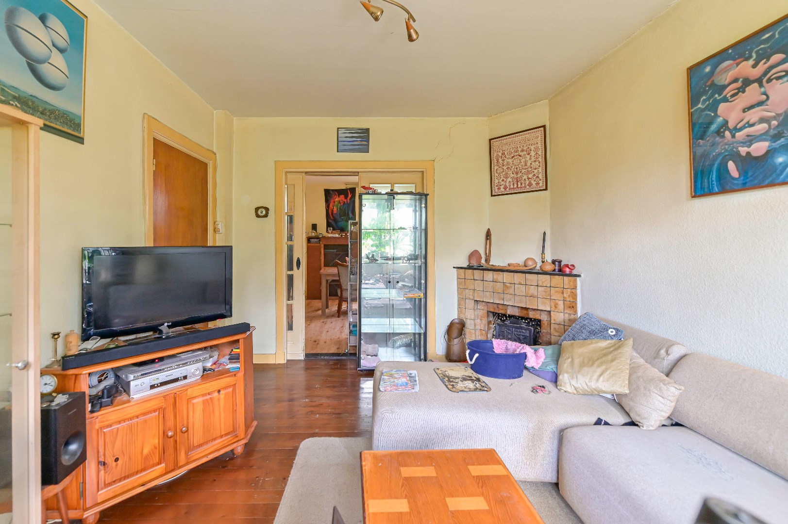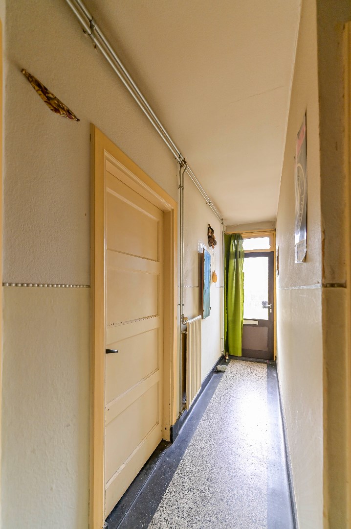 Begane grond: eigen entree met terrazzovloer. Woonkamer met houtenvloer, schouw, ventilatiesysteem, en-suite deuren en erker. Eenvoudige leefkeuken met terrazzovloer, keukenblok, CV-opstelling en witgoedaansluiting. Portaaltje met tegelvloer en aangrenzend de badkamer, trap naar 1ste verdieping en deur met toegang tot de tuin. Badkamer met douche, wastafel en toilet. Zeer ruime tuin op het oosten met