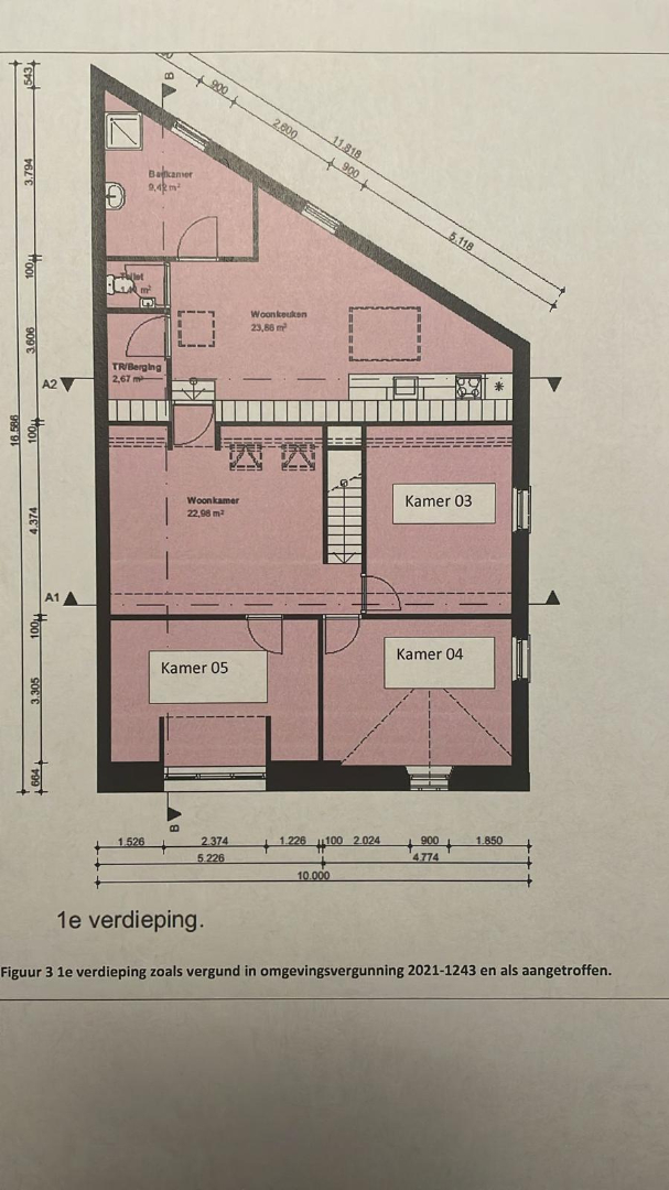 Bijzonderheden: Bouwjaar: 1905. Woonoppervlakte: ca 106m2. Inhoud woning: ca 325m3. Woning is voorzien van aluminium kozijnen met dubbele beglazing. Het roze gearceerde gedeelte van de plattegronden komen toe aan de bovenwoning Aanvaarding in overleg.