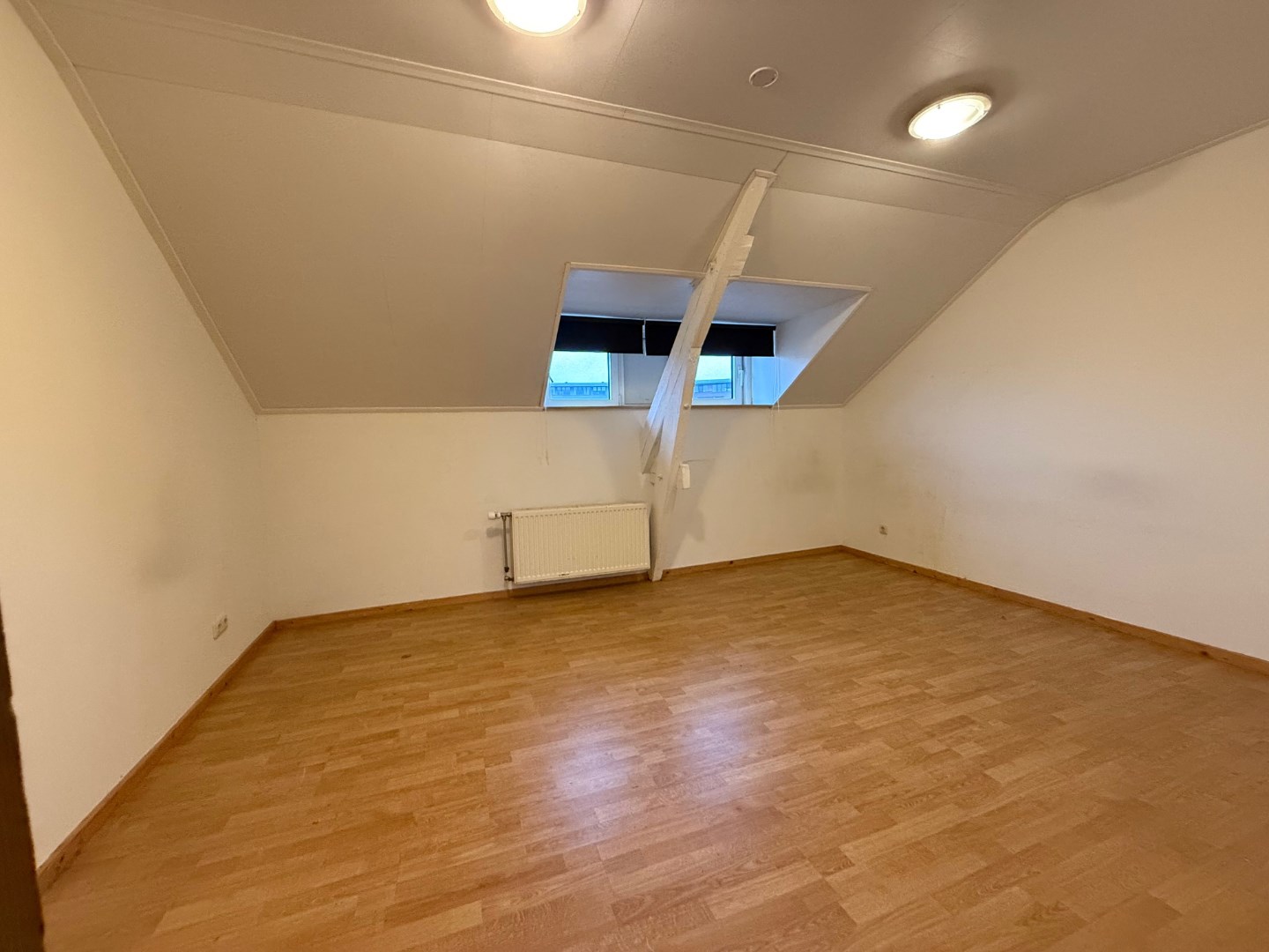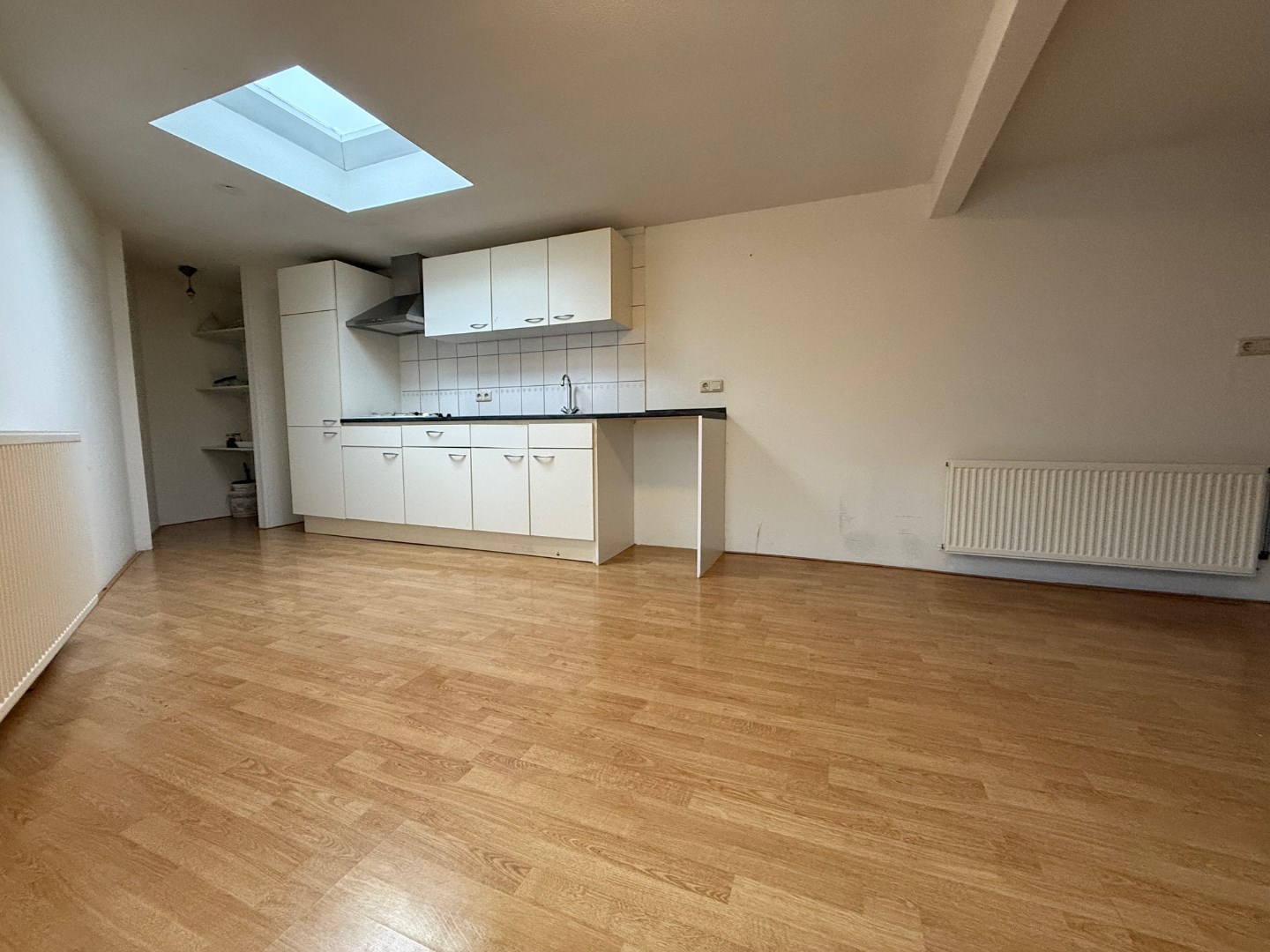 Tegenover de supermarkt en op loopafstand van het centrum gelegen bovenwoning met drie slaapkamers.