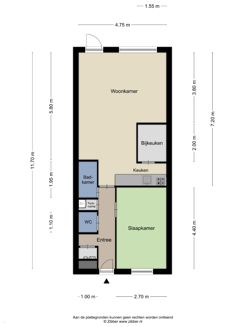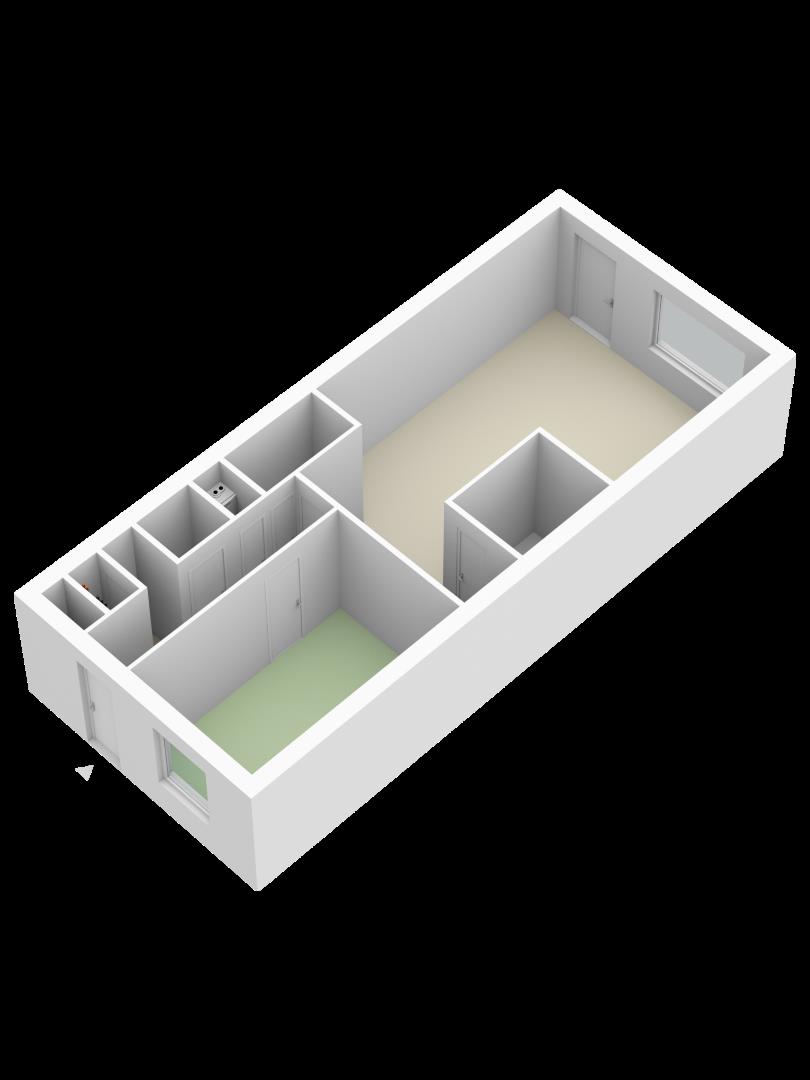 Indeling: hal met garderobe en laminaatvloer. Toilet met fonteintje. L-vormige woonkamer met laminaatvloer. Open keuken met koel/vries combinatie, afzuigkap en 4-pits gaskookplaat. Ruime bijkeuken met witgoedaansluiting. Slaapkamer met laminaatvloer en rolluik. Badkamer met douche en wastafel. Aparte technische ruimte met CV-opstelling.