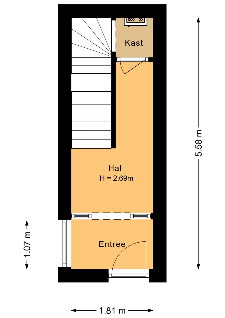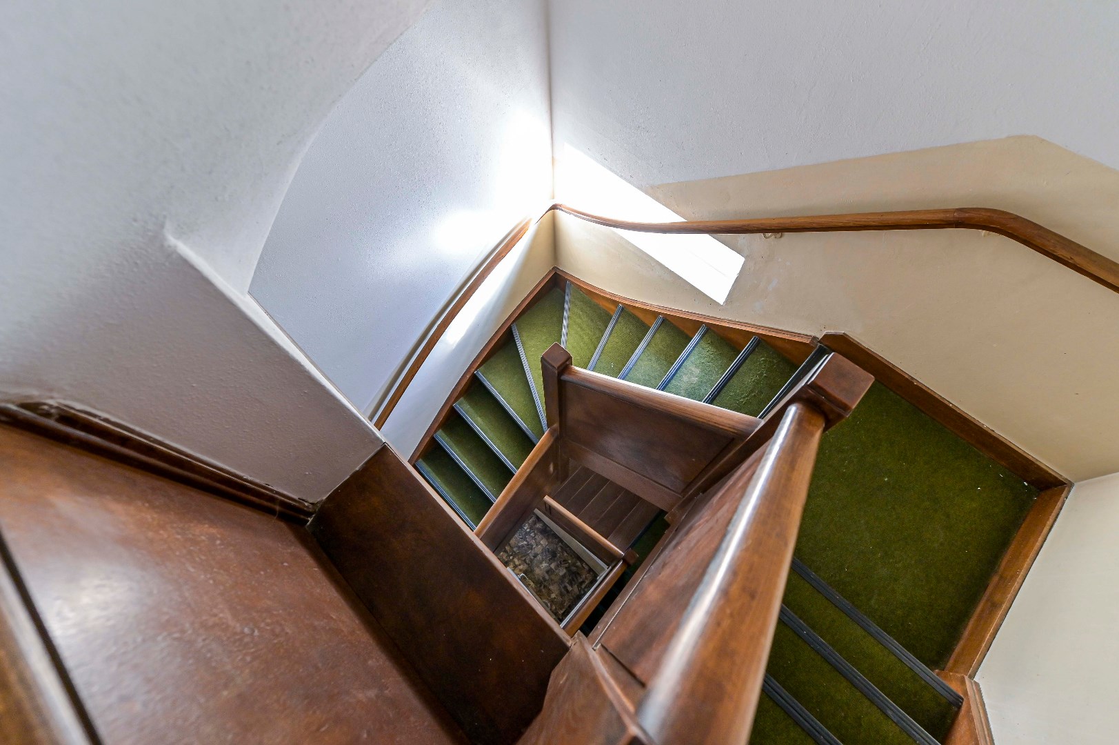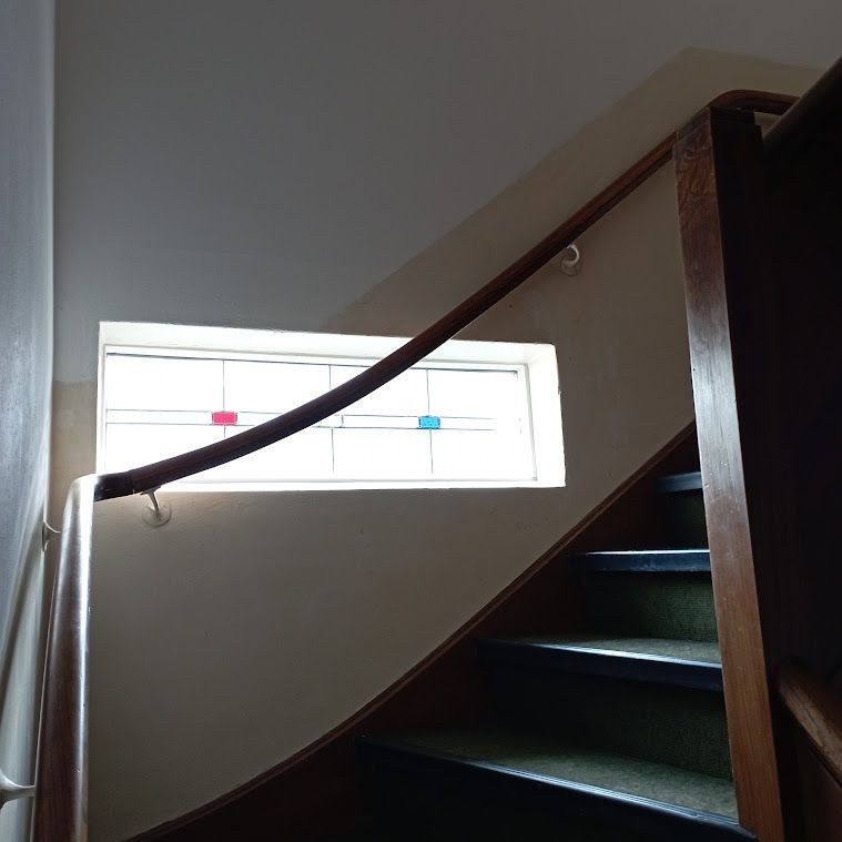 Begane grond: entree met garderobe en originele tegelvloer, glas in loodramen en statige trap naar 1ste verdieping. In het portaaltje naar de kelder bevindt zich de nieuwe groepenkast.
