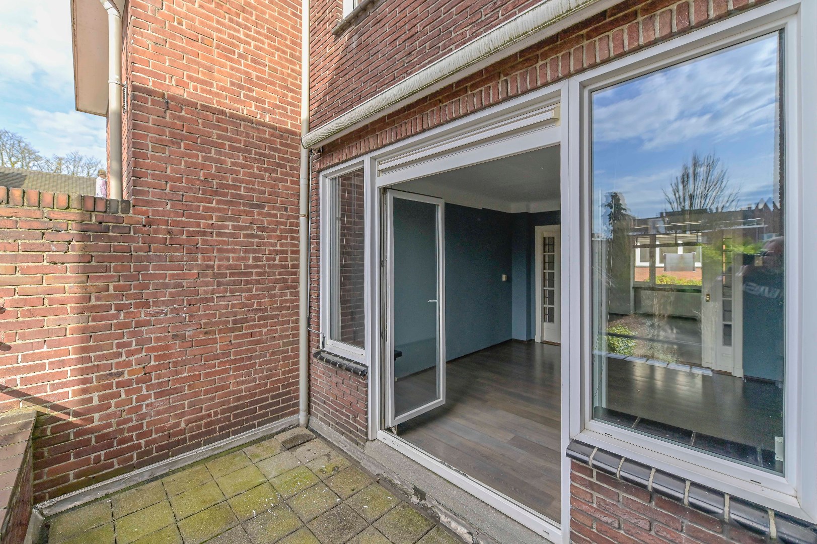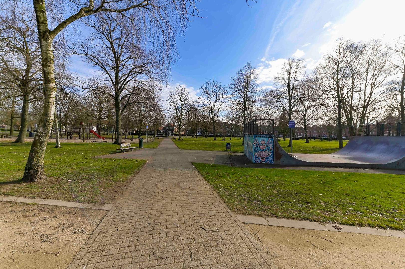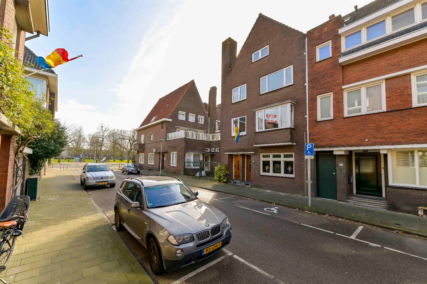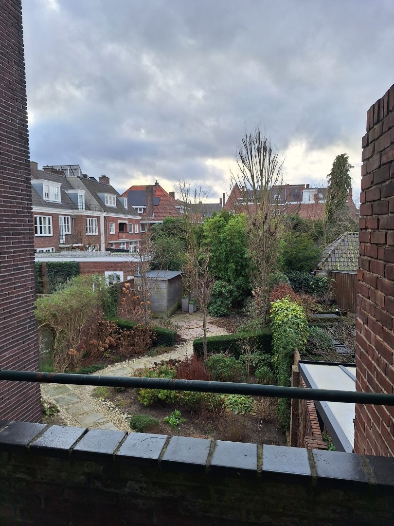 In centrum op steenworpafstand van het Julianapark en Rosarium gelegen zeer ruime bovenwoning met ruim terras op het zuiden met zicht op veel groen.