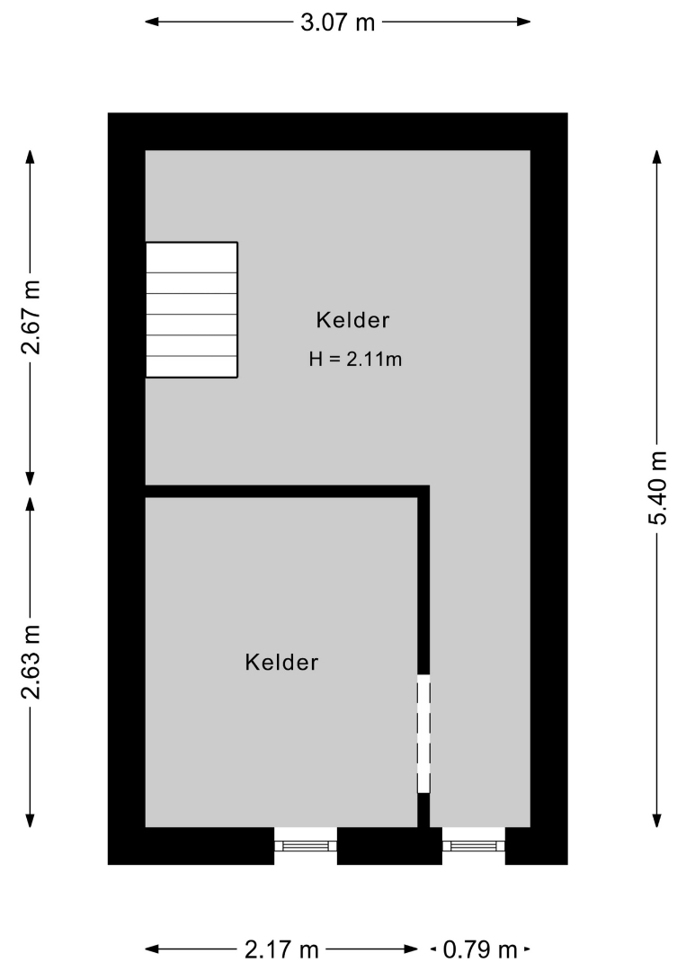 Kelder: bestaande uit 2 ruimtes, "hoog en droog".