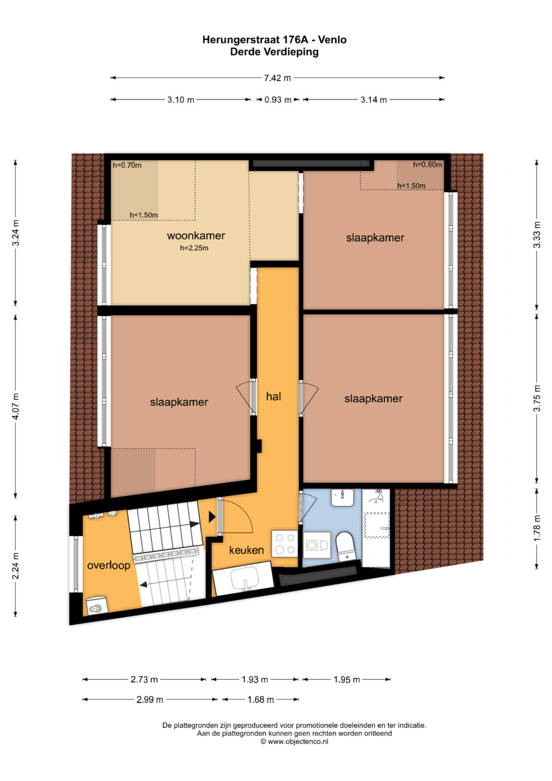 Derde verdieping (o.a. voorzien van laminaatvloeren en vloerbedekking):