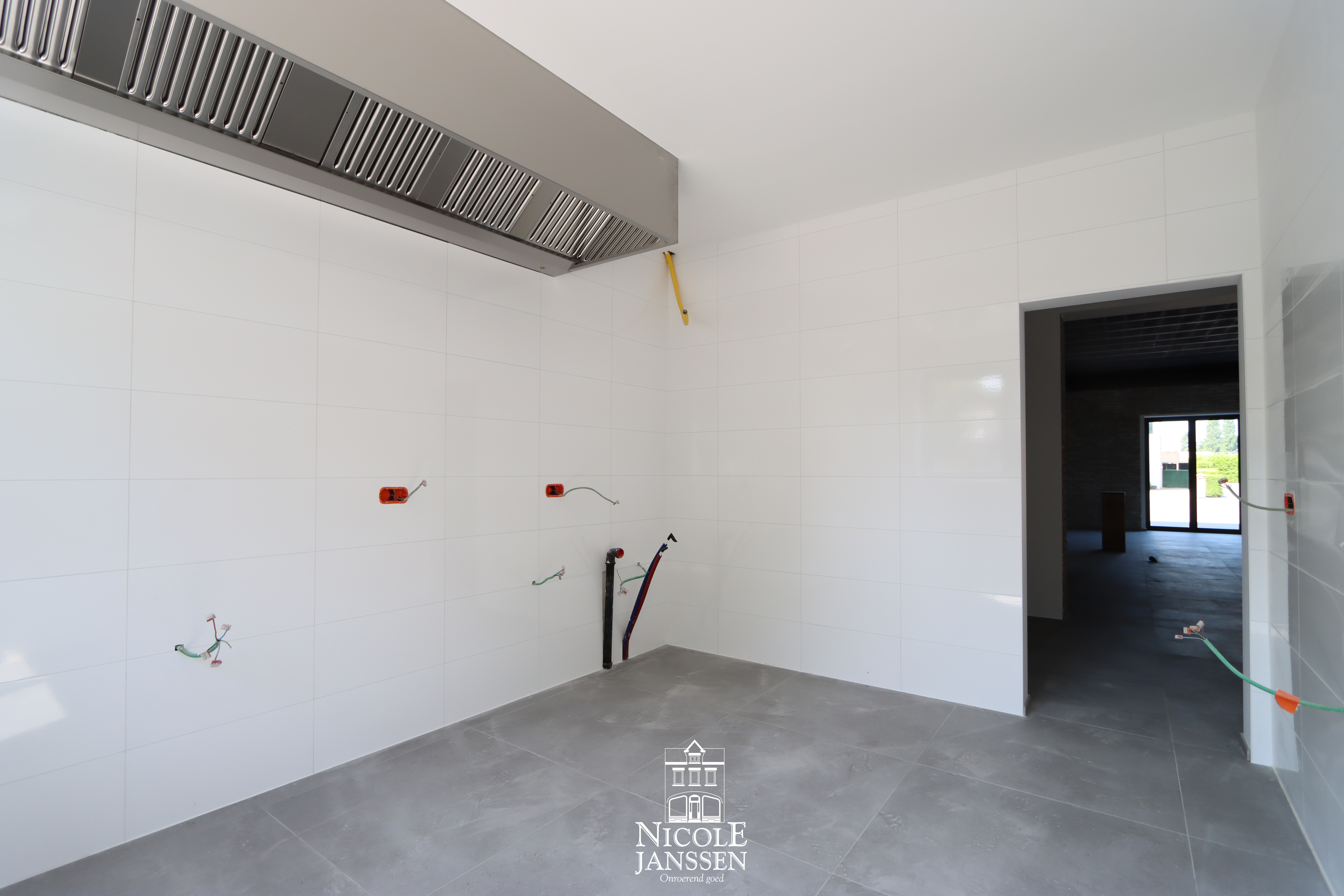 - Volledig betegelde ruimte voor keuken met professionele afzuigkap en voldoende elektrische voorzieningen
