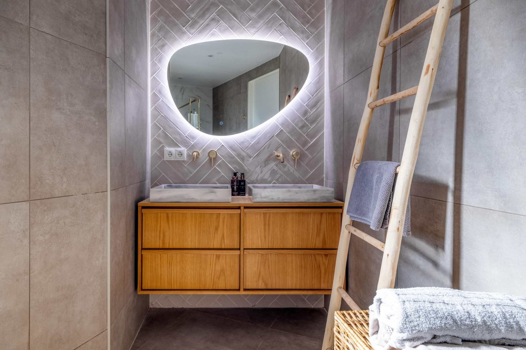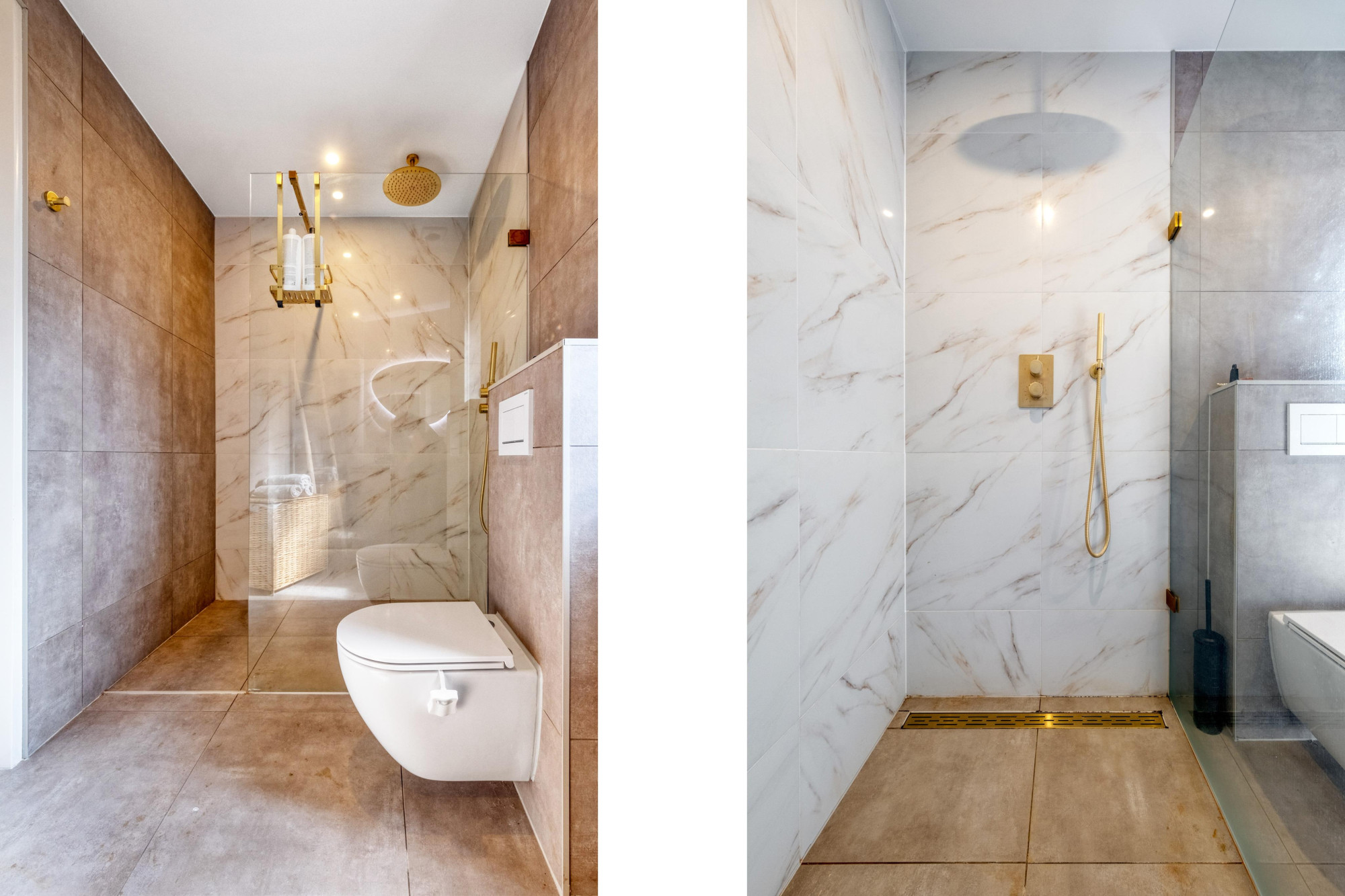- Volledig betegelde schitterende badkamer(4.00mx2.28m) met6 vloerverwarming, grote inloopdouche, dubbele vaste wastafel, 2e zwevend toilet.