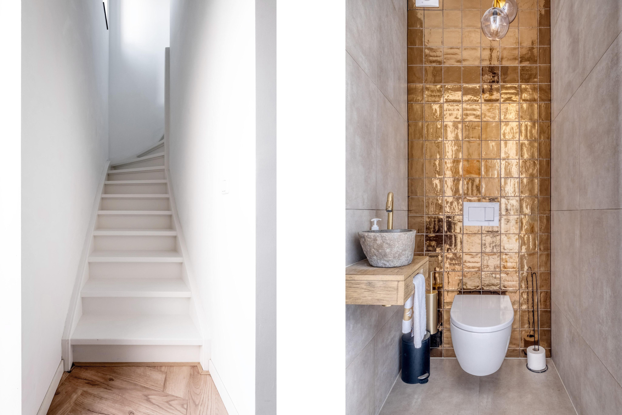 - Zeer royale entree met meterkast en volledig betegeld zwevend toilet met fonteintje.