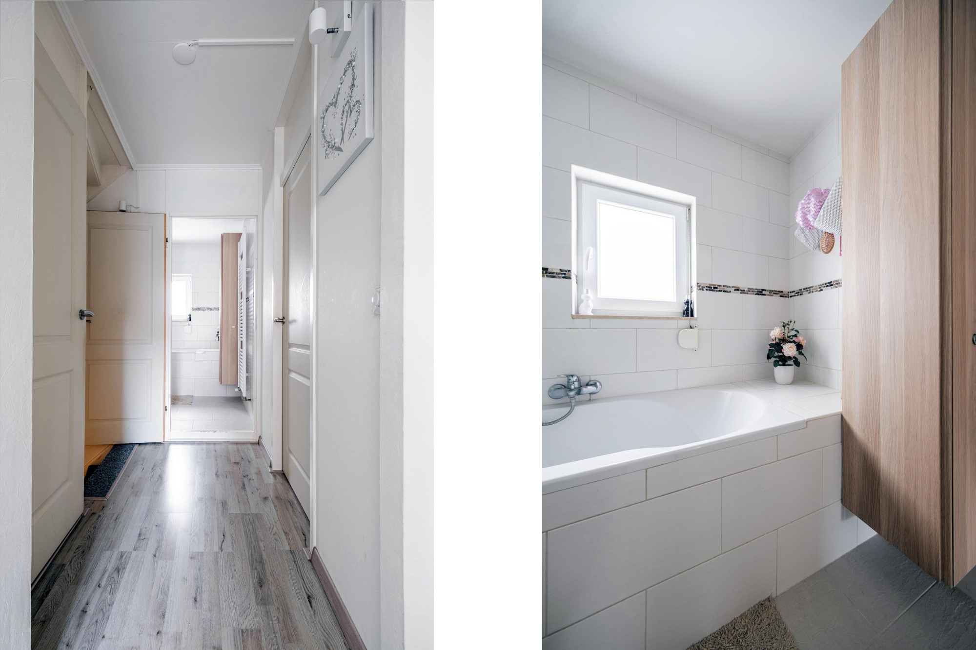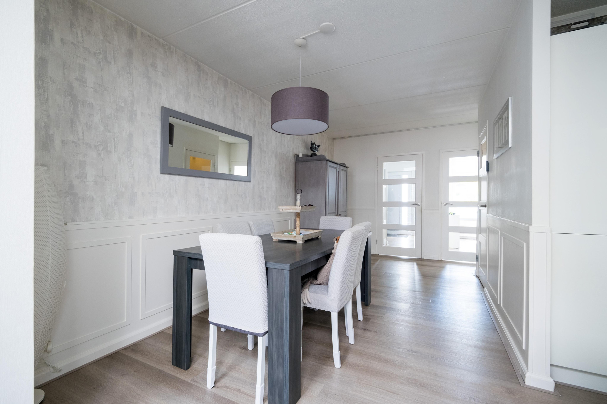 Bij binnenkomt wordt u verwelkomd in een lichte hal die toegang biedt tot diverse vertrekken.