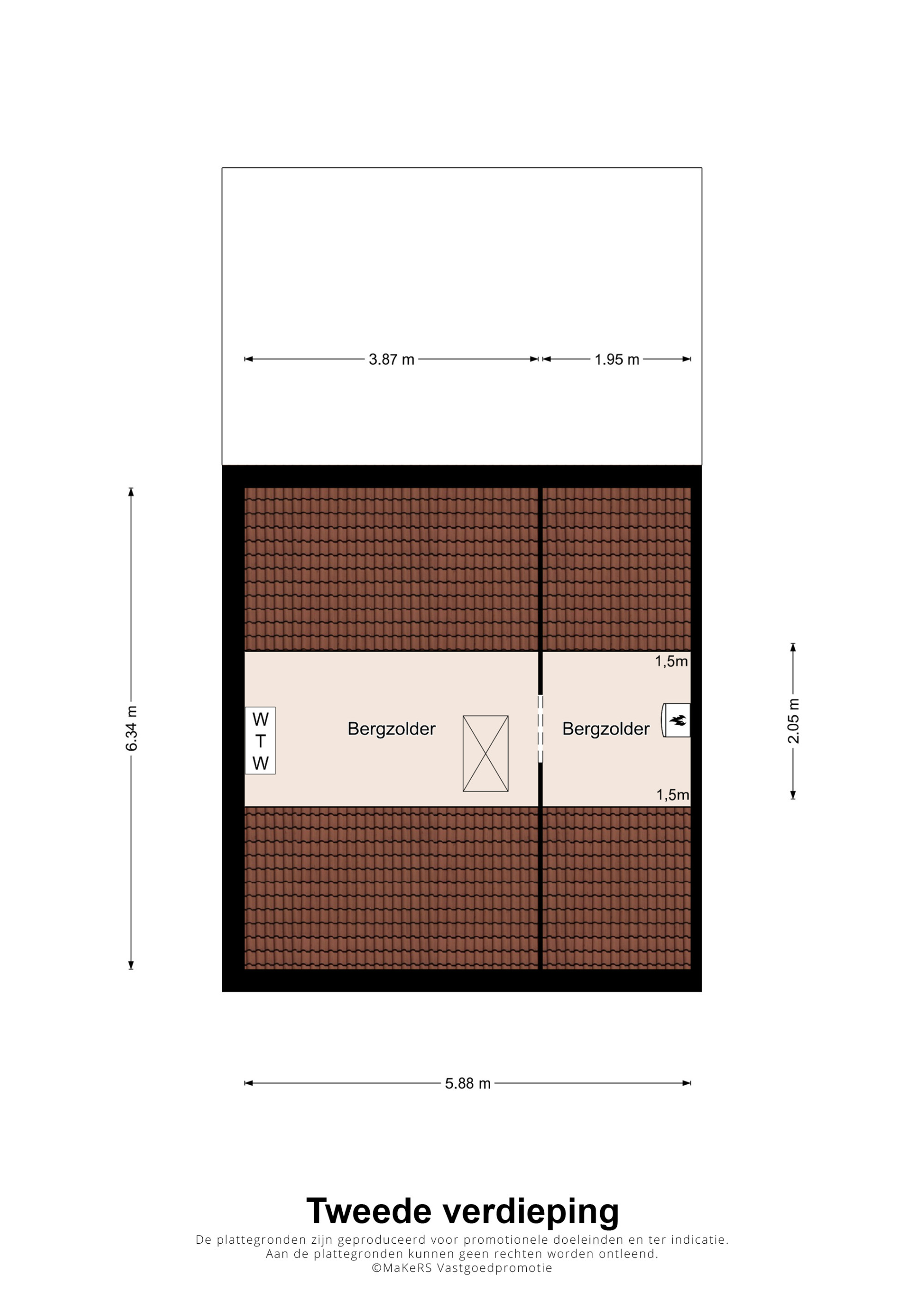 Via een vlizotrap bereikt u de royale bergzolder. Hier vindt u de cv-installatie (Vaillant, eigendom, ca. 2007) en de unit voor de mechanische ventilatie (WTW).