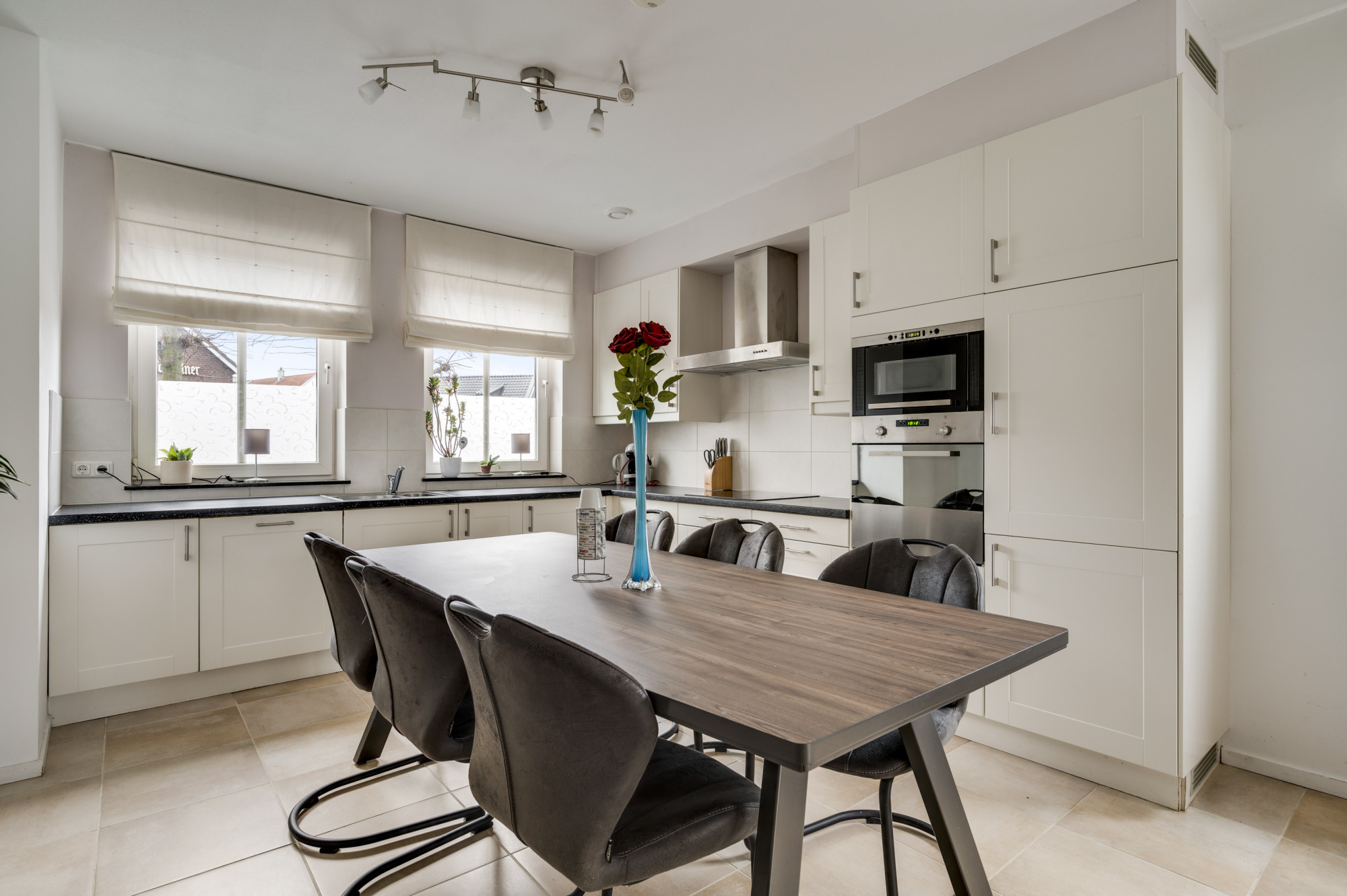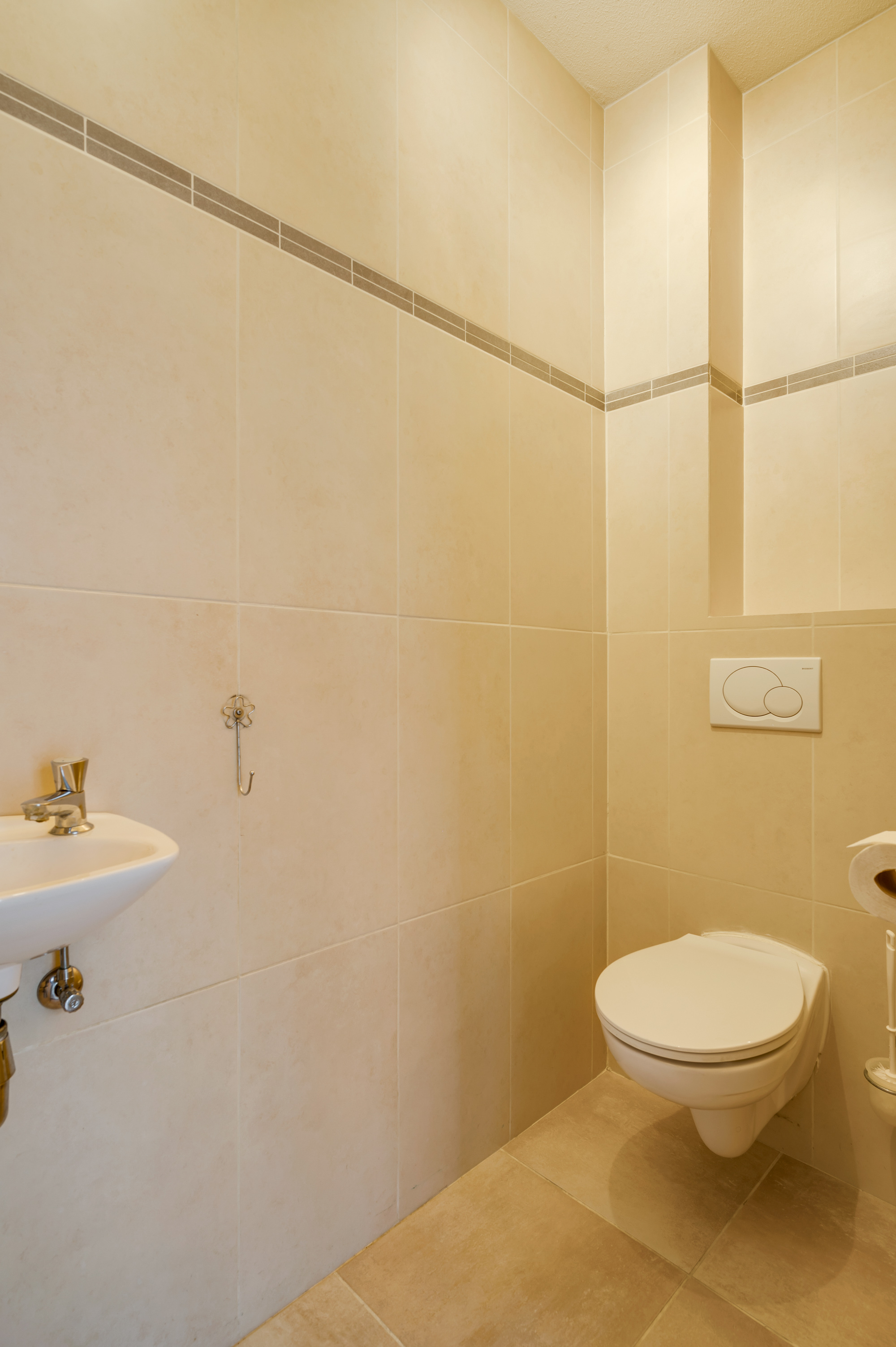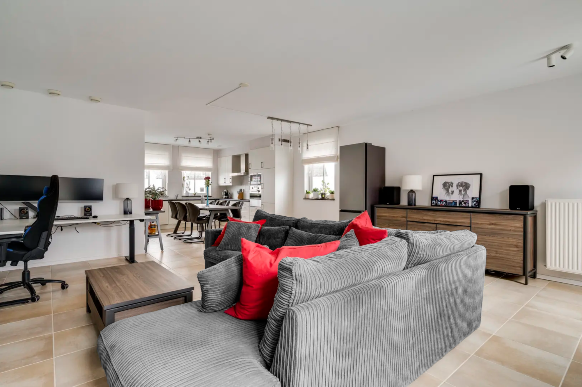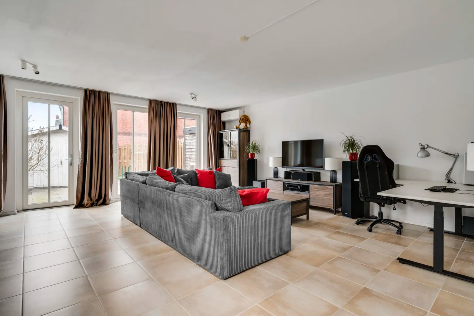 Bij binnenkomst wordt u verwelkomd in een moderne hal met toiletruimte en toegang tot een lichte en ruime woonkamer met airconditioning. De uitgebouwde woonkamer is voorzien van fraaie grote ramen en een loopdeur, waardoor u direct contact heeft met de zonnige tuin. De moderne keuken in L-opstelling is voorzien van alle benodigde inbouwapparatuur, zoals een keramische kookplaat, afzuigkap, magnetron, oven en een vaatwasser. De begane grond is volledig voorzien van een stijlvolle tegelvloer met grotendeels vloerverwarming.