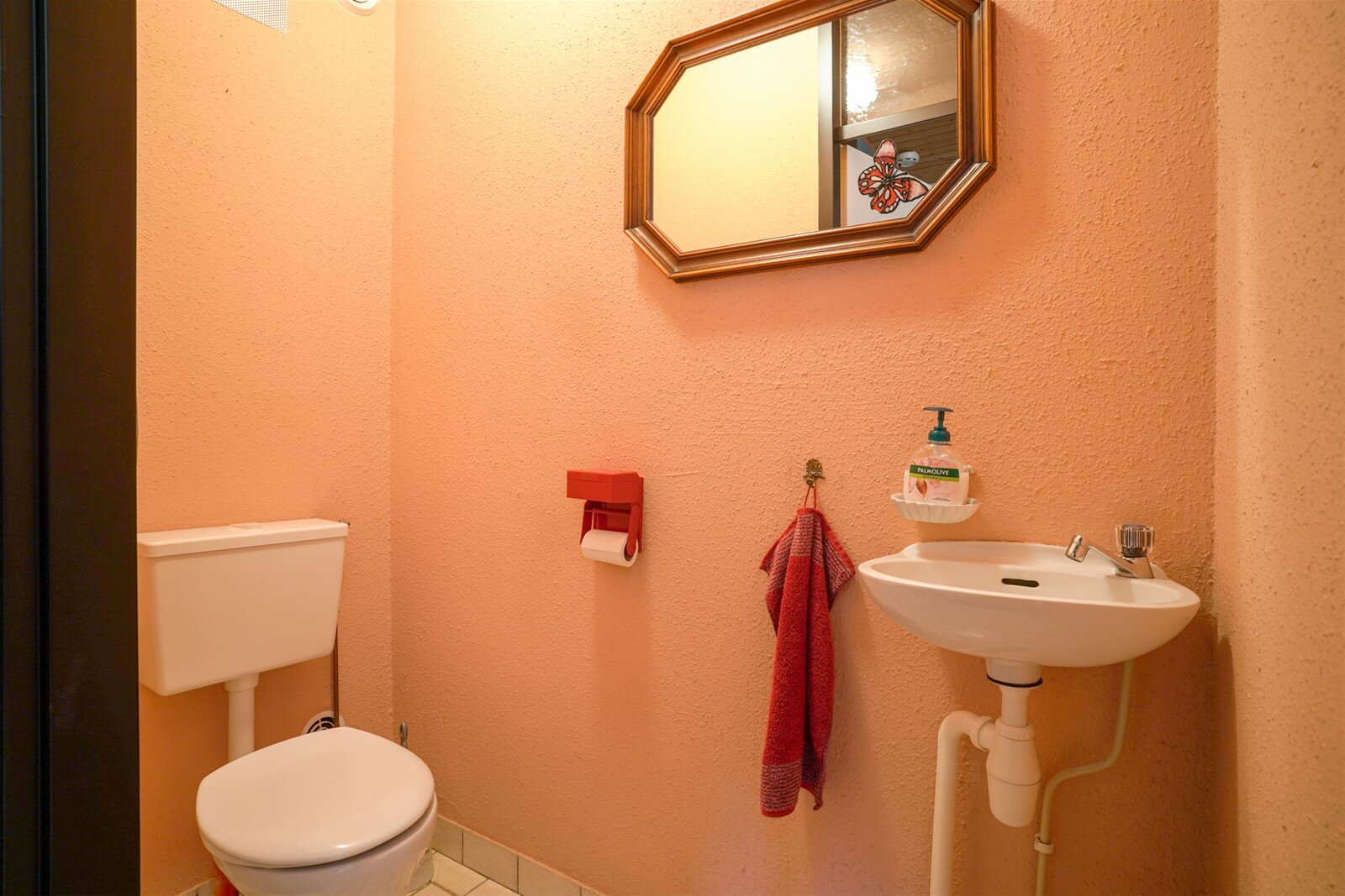 Overloop met trap naar de tweede verdieping, toilet en toegang naar de woonkamer / keuken.