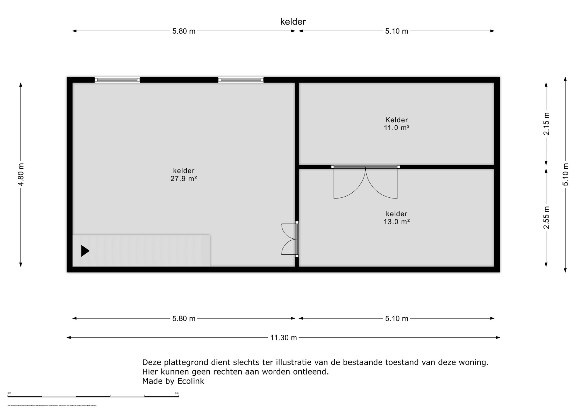 De kelder biedt verrassend veel ruimte met een totale oppervlakte van 51,9 m², verdeeld over drie compartimenten. De grootste ruimte van 27,9 m² is ideaal voor opslag of kan dienen als hobbyruimte. Daarnaast zijn er nog twee afzonderlijke ruimtes van respectievelijk 13 m² en 11 m², perfect voor het creëren van een wijnkelder of extra bergruimte. De kelder is volledig droog en biedt tal van mogelijkheden.