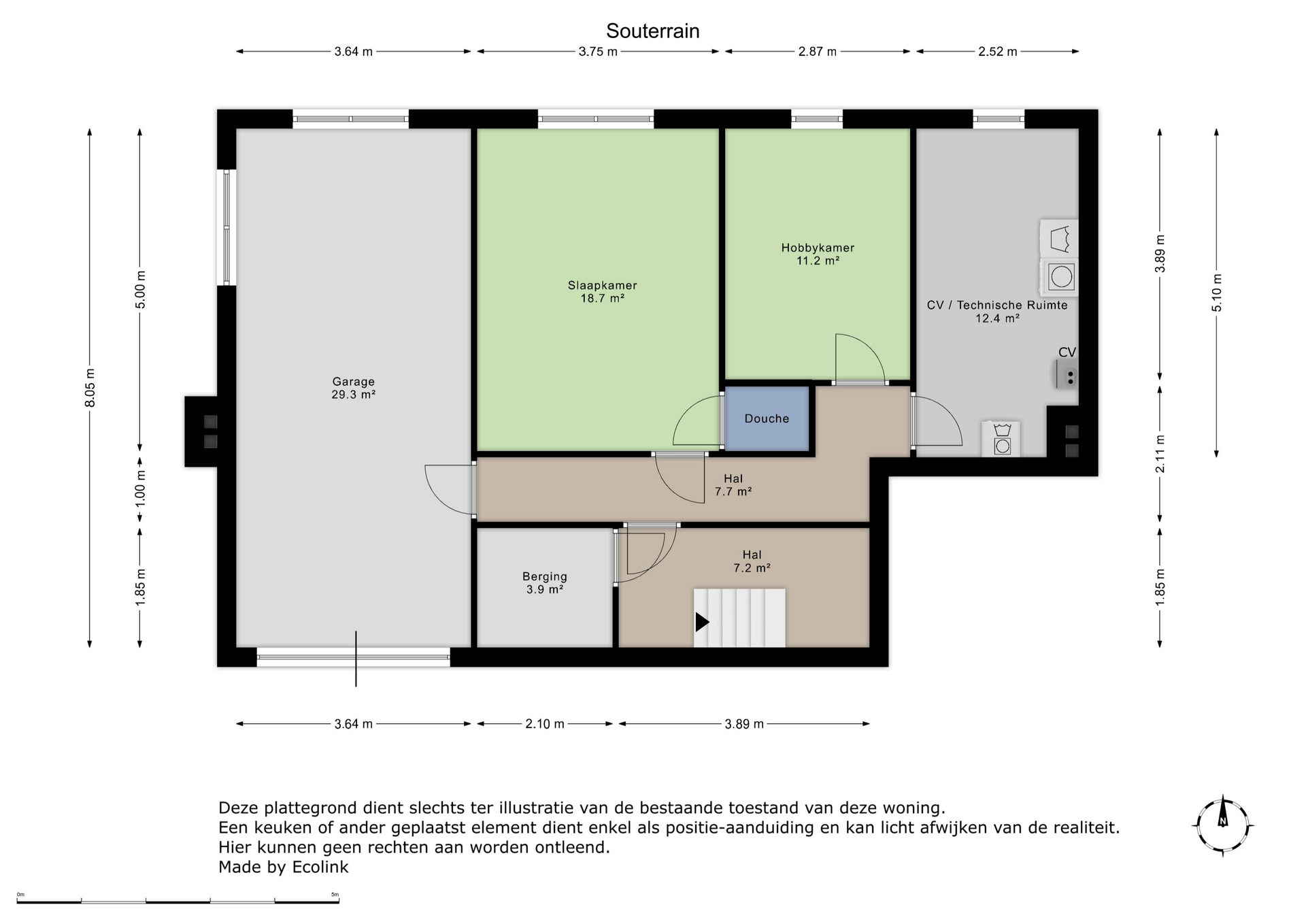 Het souterrain van de woning biedt veel extra mogelijkheden. U vindt hier onder andere een ruime garage, perfect voor het stallen van een auto of het creëren van een werkplek. Daarnaast beschikt het souterrain over een berging, een ruime slaapkamer, een hobbykamer en een badkamer met douche. De technische ruimte biedt plaats aan de CV-installatie en witgoedaansluitingen. Deze verdieping is ideaal voor een gastenverblijf, kantoor aan huis of een eigen ontspanningsruimte, geheel naar wens in te richten.