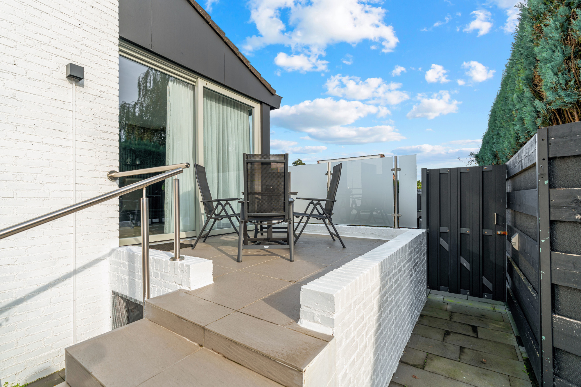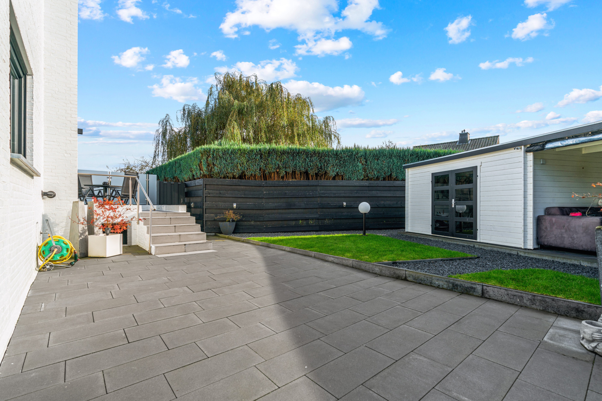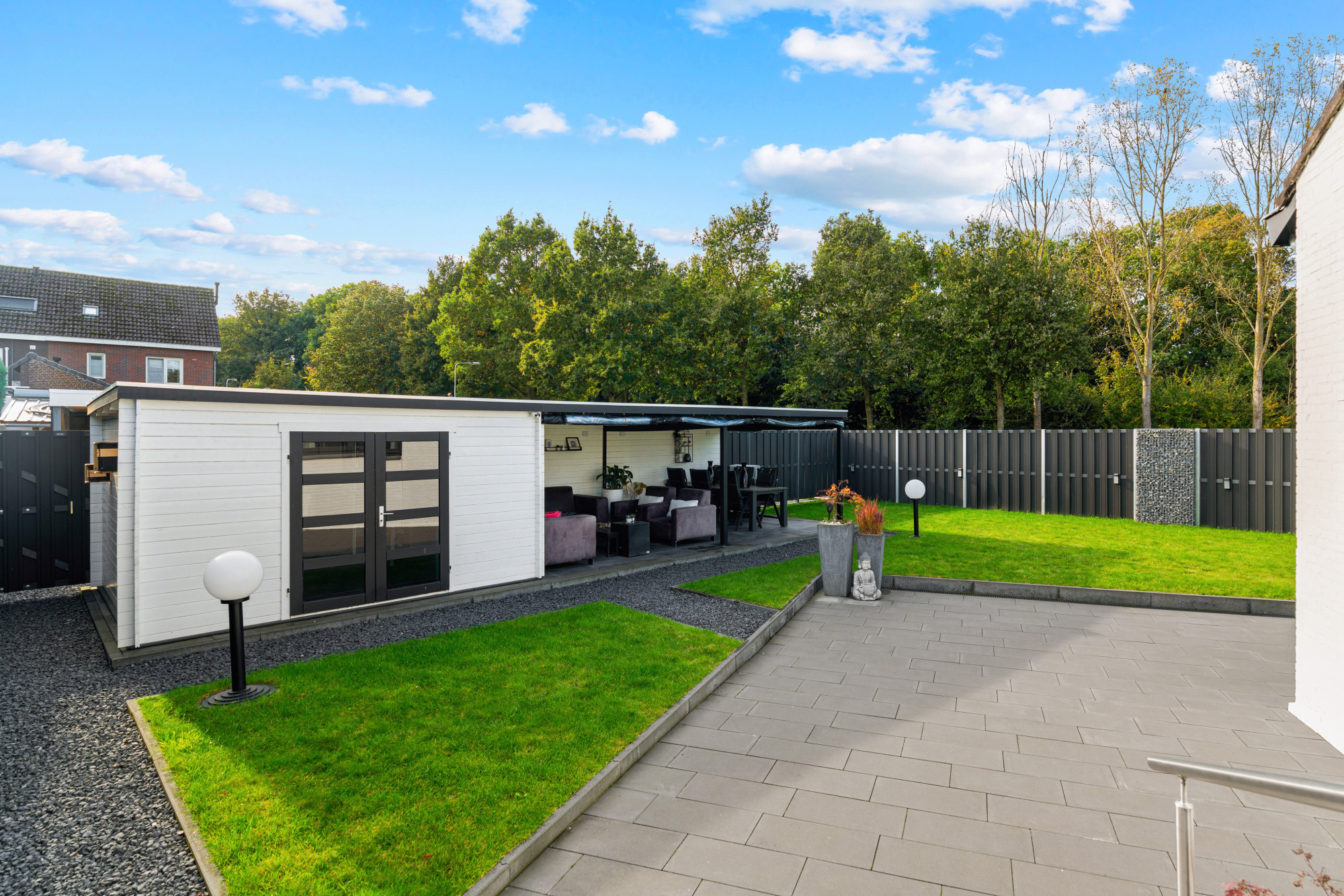 De zonnige achtertuin, gelegen op het westen, biedt alles wat u nodig heeft om optimaal te genieten van het buitenleven. Het prachtige gazon en het betegelde terras creëren een ideale plek voor ontspanning en samenzijn. Daarnaast bevindt zich hier een vrijstaande houten berging met een overdekt terras, waar u heerlijk beschut kunt zitten en kunt genieten van de tuin, ongeacht het weer. Deze schuur met overdekt terras biedt een charmante extra zitmogelijkheid, perfect voor een zomeravond met vrienden of een rustig moment voor uzelf. Verder beschikt de tuin over een handige zij-ingang, wat extra toegankelijkheid en flexibiliteit biedt.