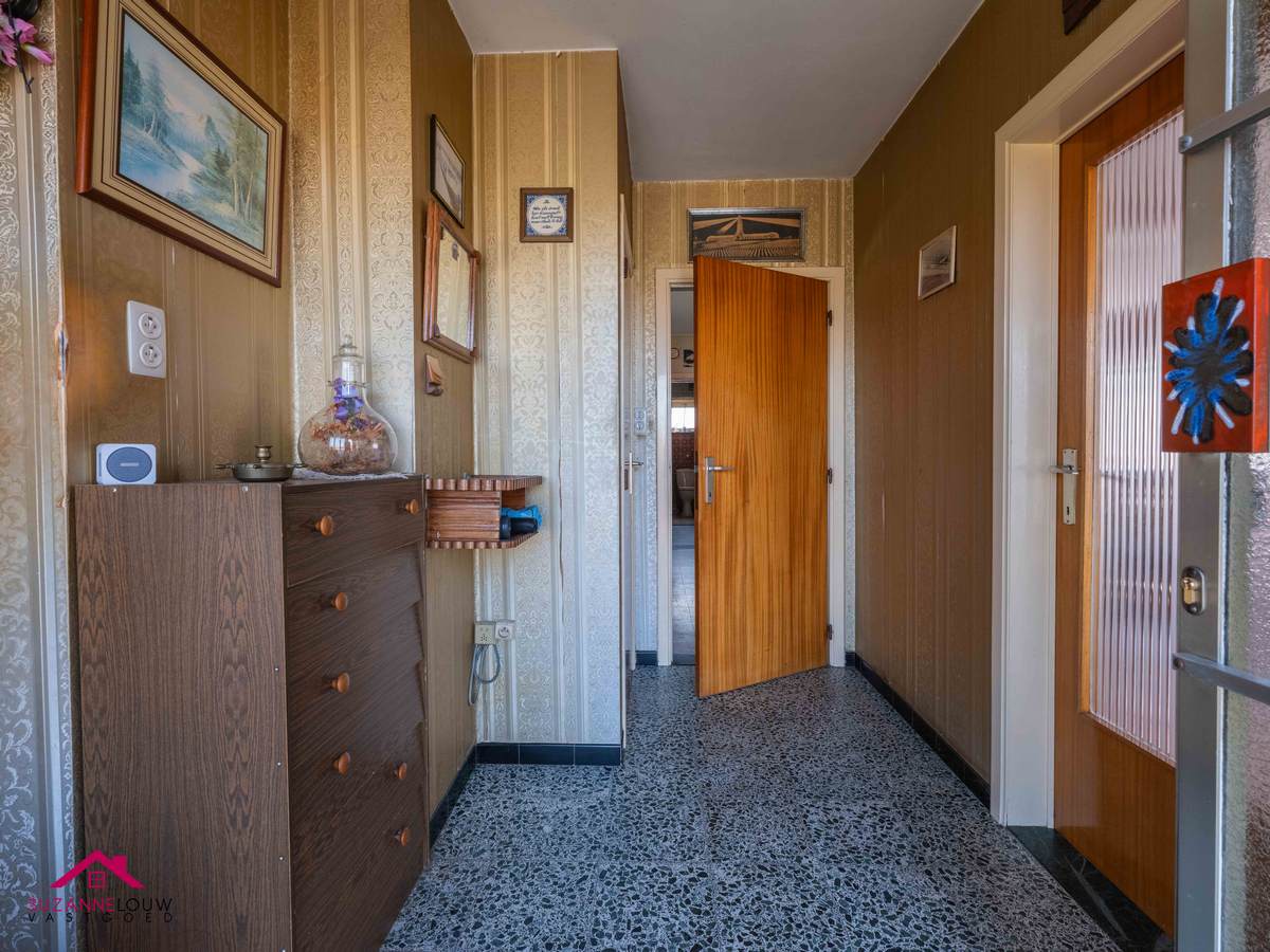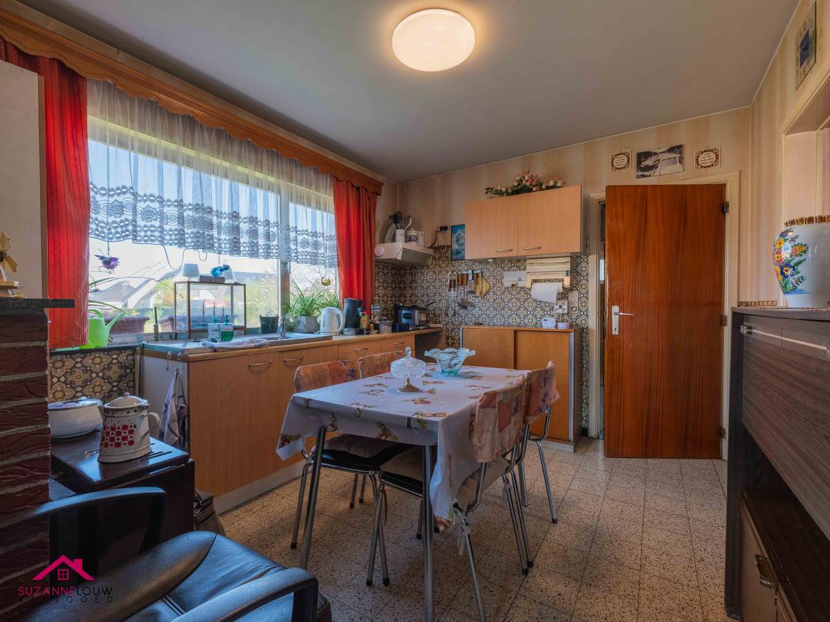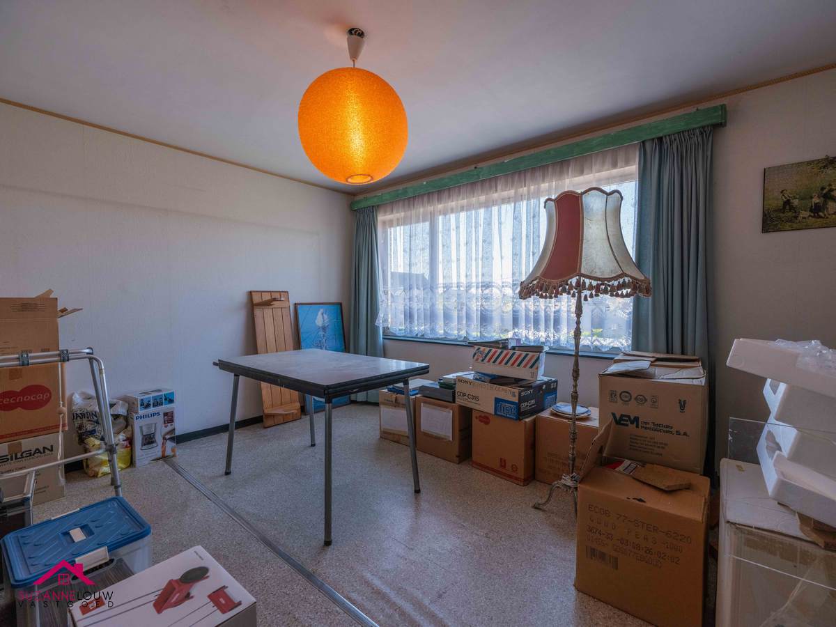 De gehele gelijkvloerse verdieping werd voorzien van een tegelvloer m.u.v. de leefruimte, deze werd voorzien van een linoleum vloerbedekking.
