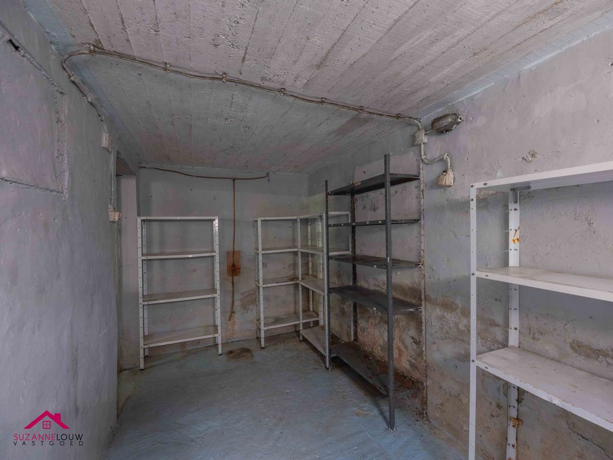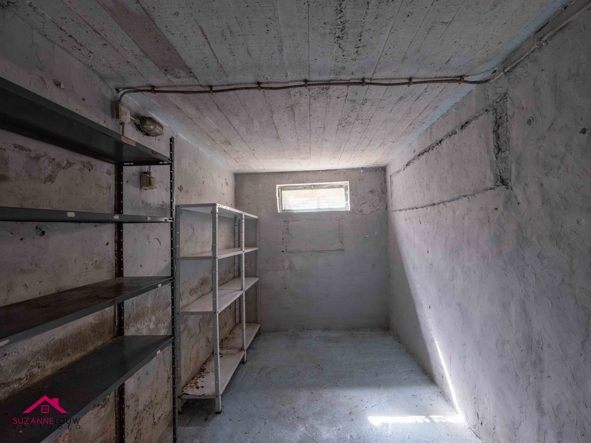Grotendeels onderkelderd: praktische bergruimtes en inpandige garage met automatische kantelpoort.