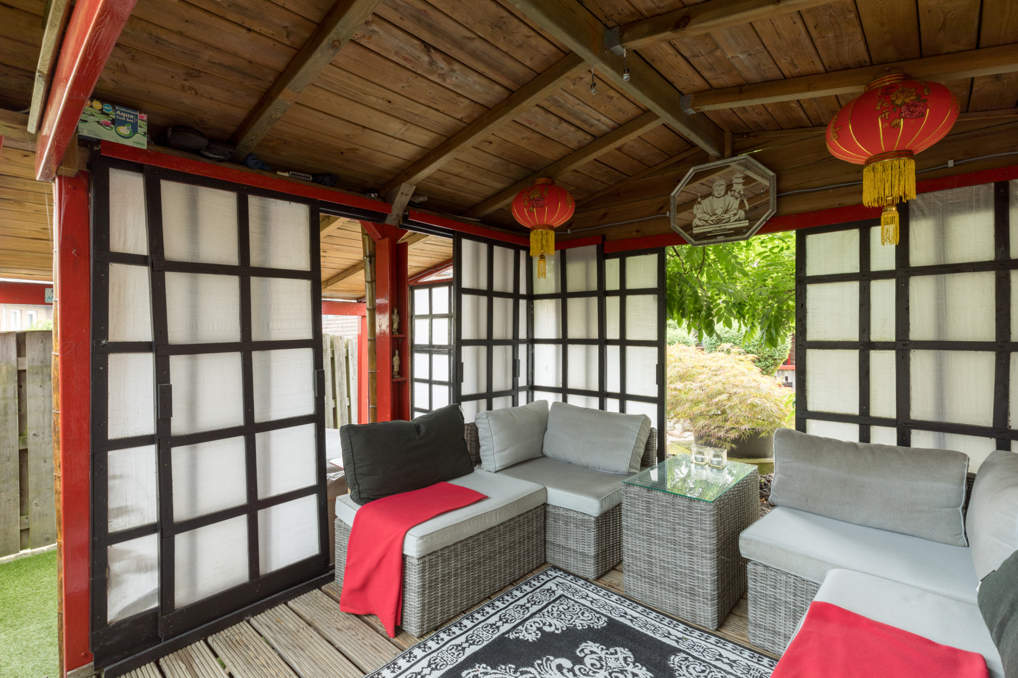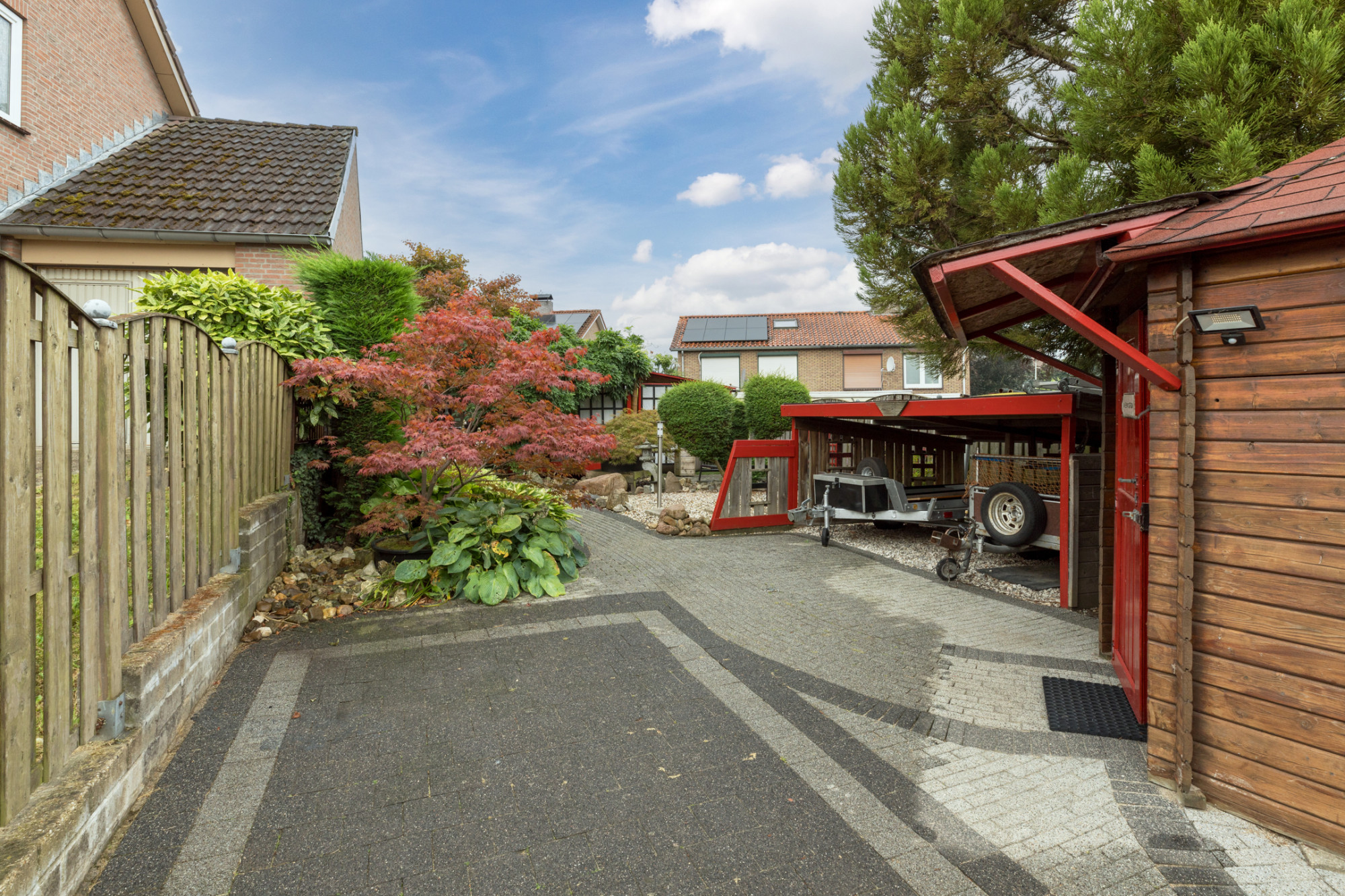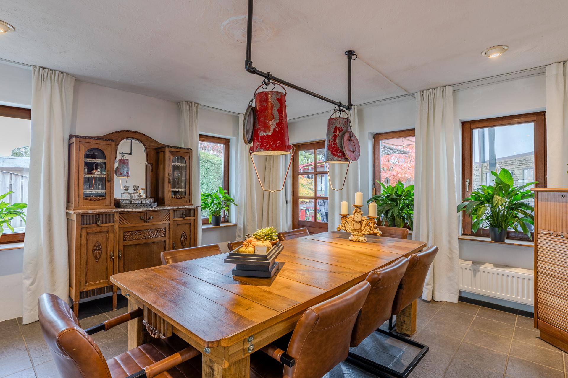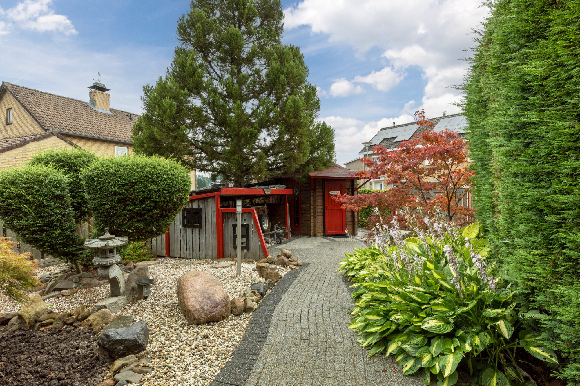 Goed onderhouden halfvrijstaande woning MET AANBOUW, terrasoverkapping, JAPANSE TUIN MET RELAXTERRAS AAN KOI-VIJVER GELEGEN, garage en volledige onderkeldering.