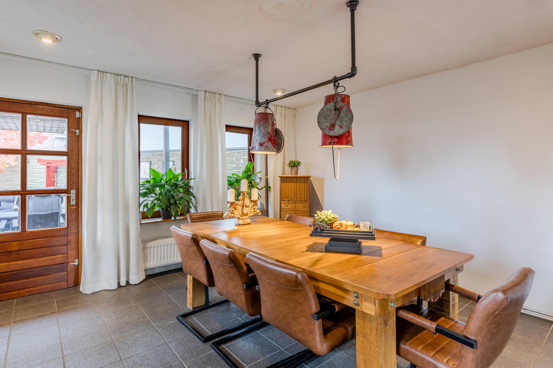 Fijne terrasoverkapping grenzend aan de eetkamer.