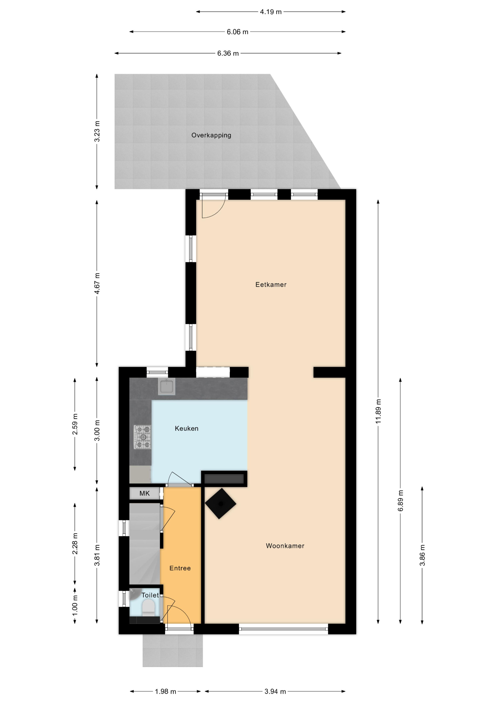 Perceel 389m².