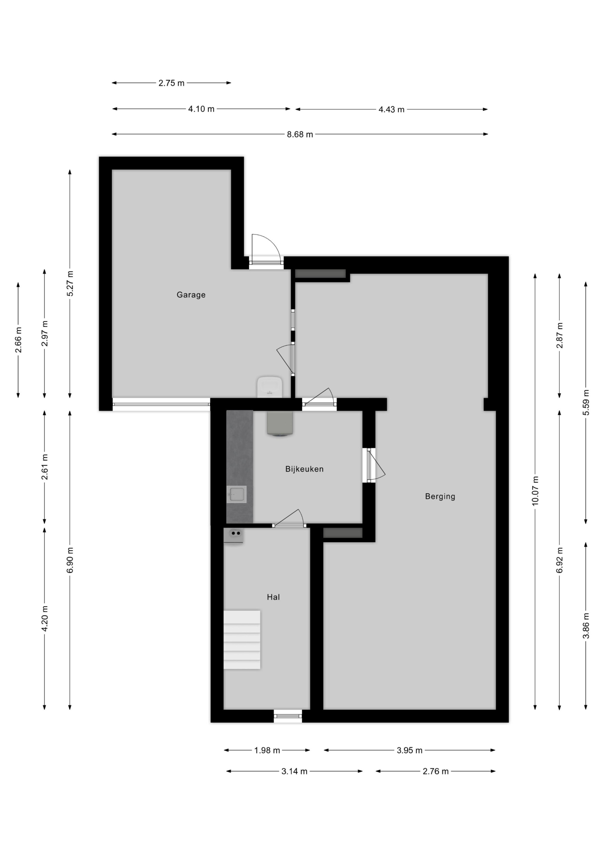 Volledig onderkelderd.