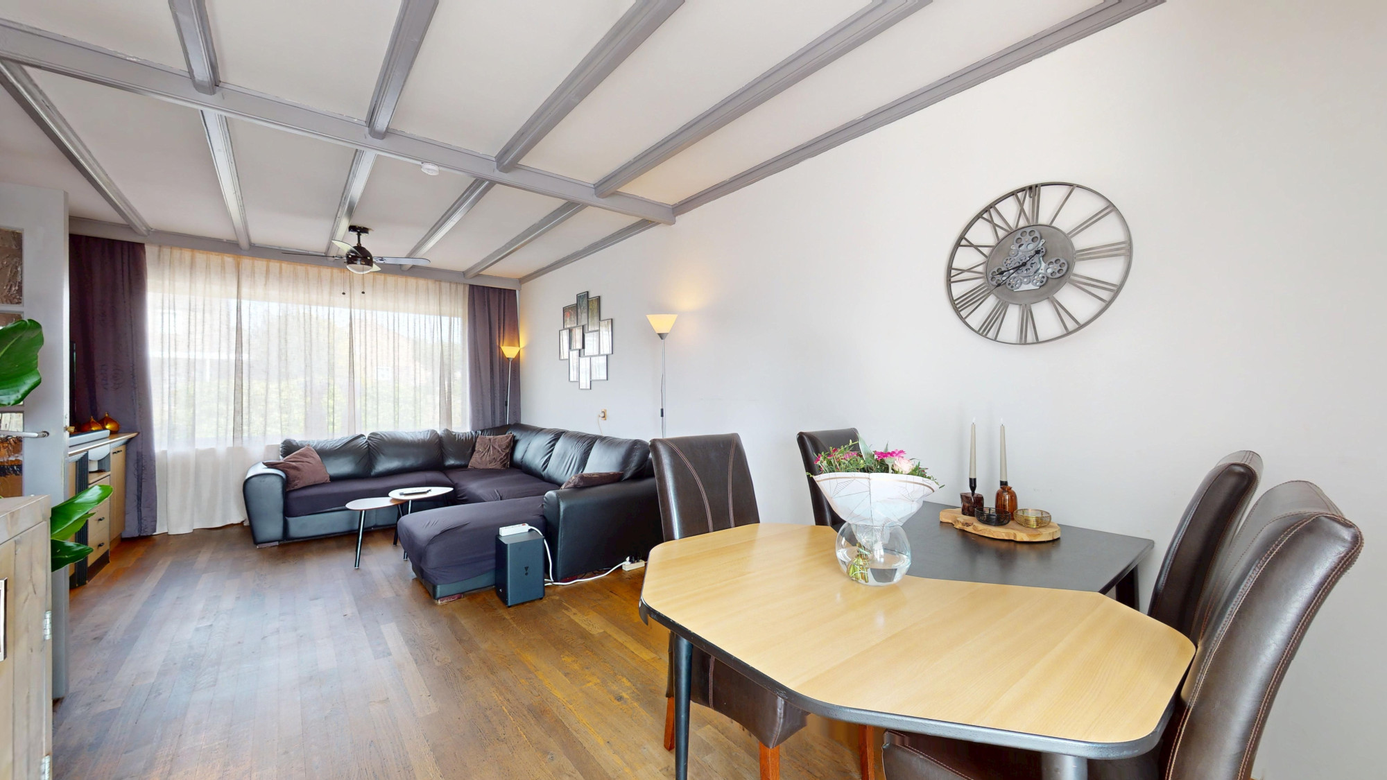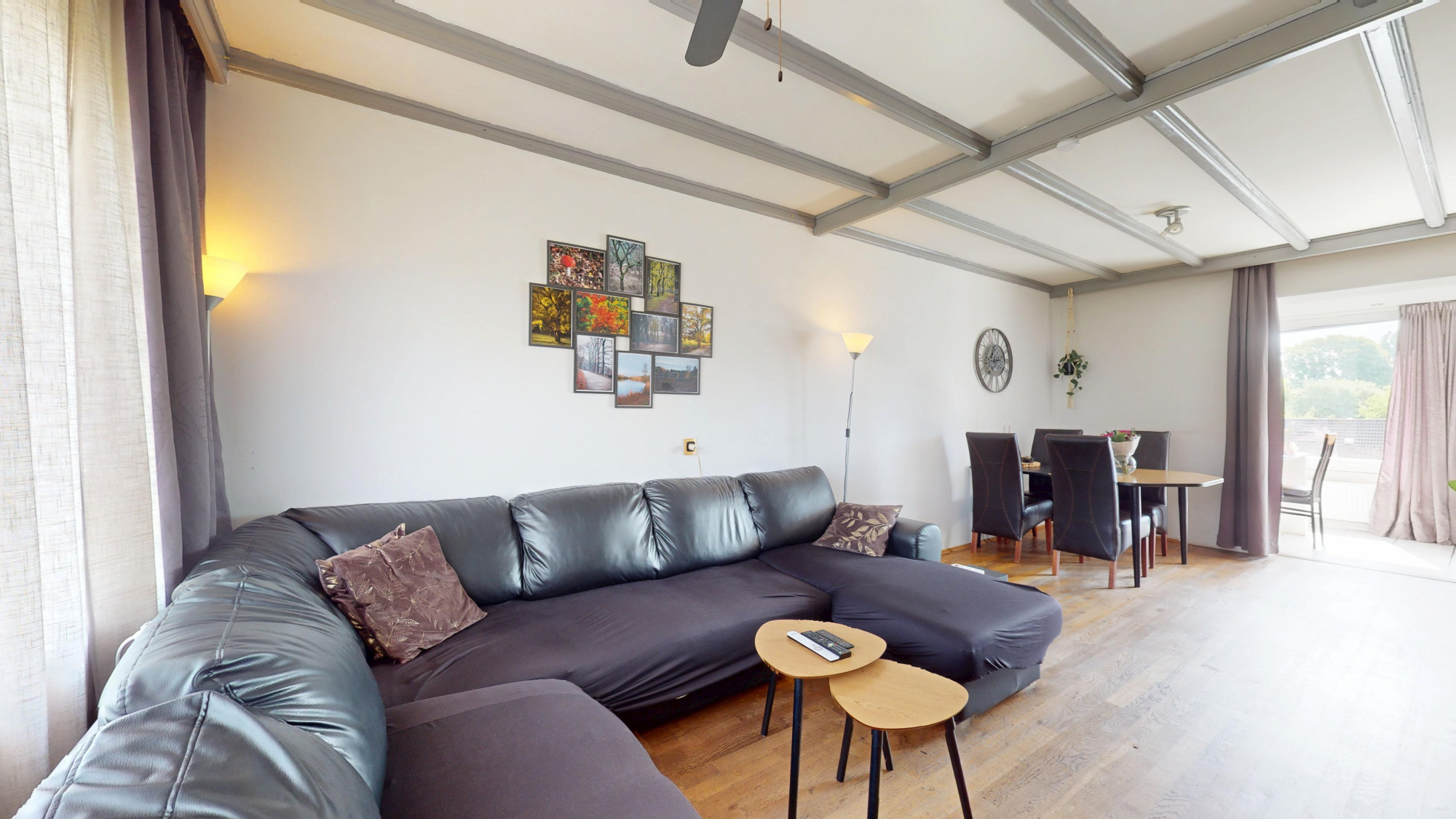 Ruime doorzon woonkamer (3,9 x 7 m) voorzien van laminaatvloer.