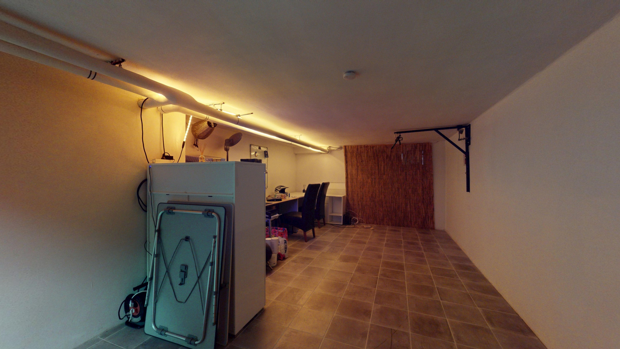 Wasruimte (4,6 x 2,2 m) alwaar aansluiting wasautomaten en. trapopgang naar begane grond.