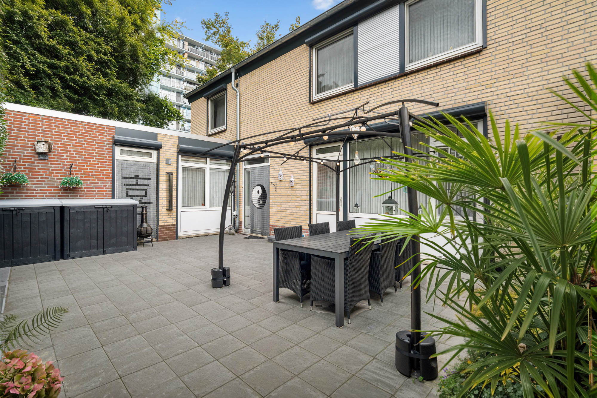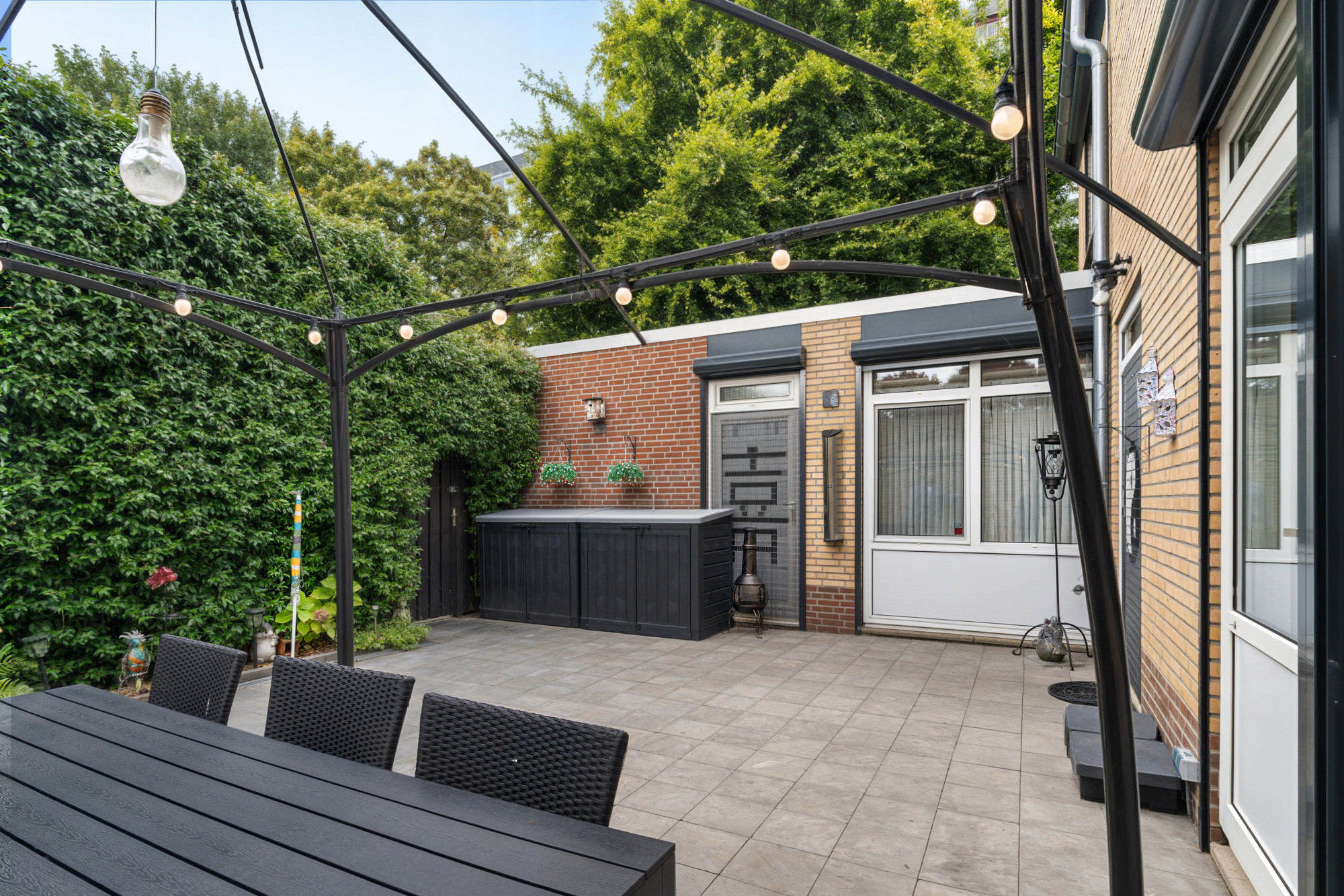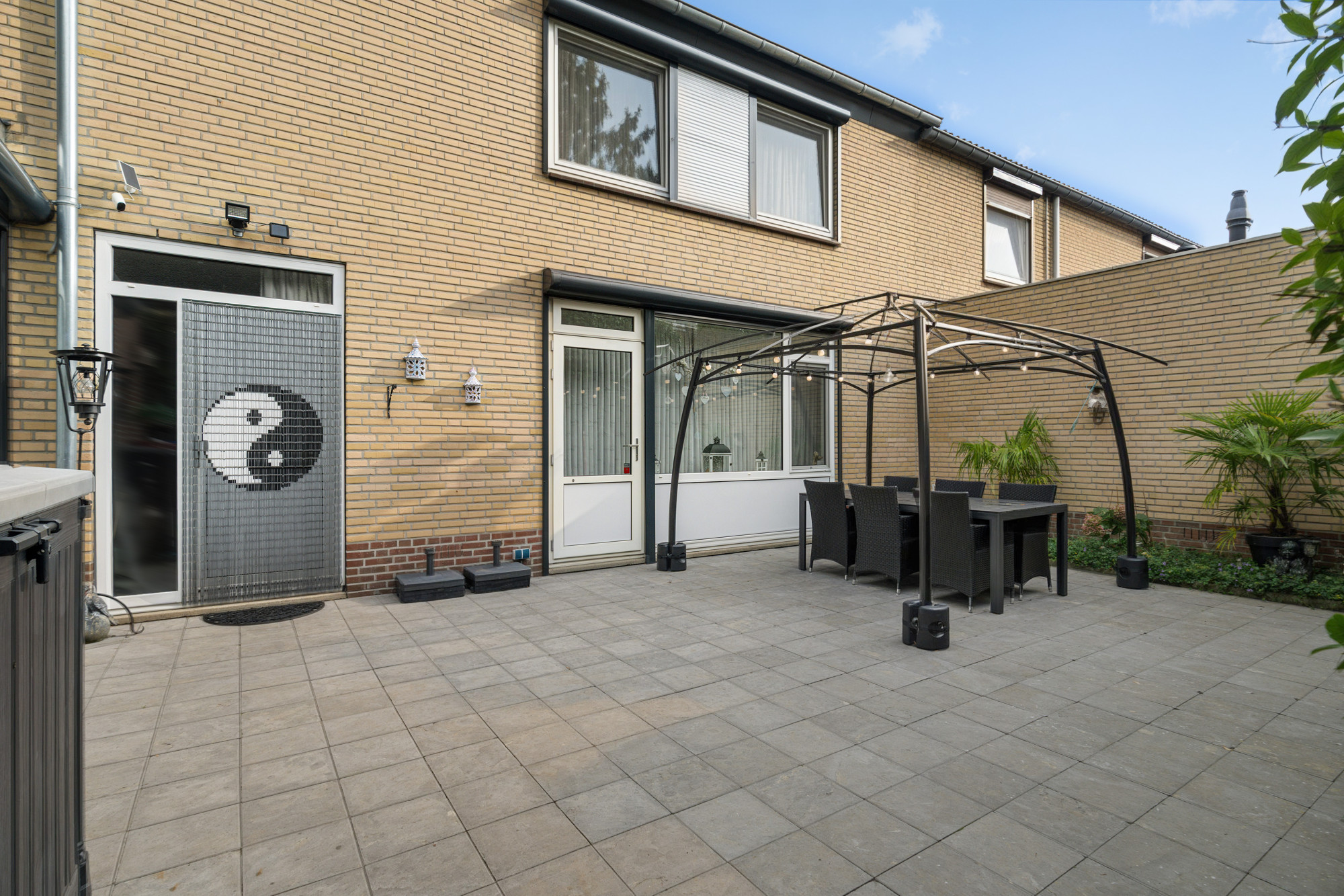 De tuin is onderhoudsvriendelijk aangelegd met nette betegeling en een stukje groen. Dankzij het zit- en eetgedeelte kun je hier heerlijk genieten van het buitenleven. De groene haag (Toscaanse jasmijn) blijft het hele jaar groen en zorgt voor privacy en een fijne sfeer.