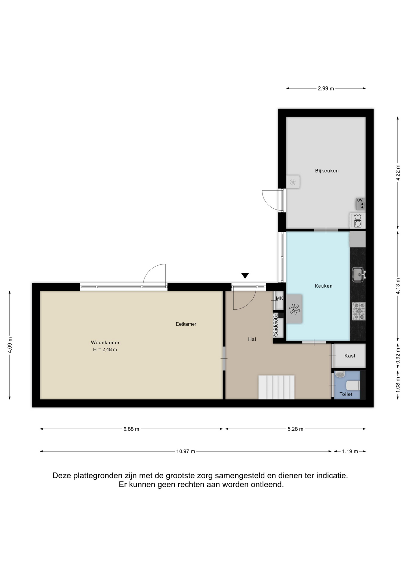Alle door ons kantoor verstrekte informatie omtrent onroerende zaken, moet beschouwd worden als een uitnodiging om in onderhandeling te treden, en is geheel vrijblijvend! Alle vermelde maten en afmetingen zijn slechts bij benadering. Aan deze beperkte info kunnen geen rechten worden ontleend. Indien in enige documentatie of op enige website informatie staat die niet overeen komt met de werkelijkheid, dan geldt de feitelijke situatie waarin de woning zich bevindt, zoals koper deze tijdens de bezichtiging heeft kunnen waarnemen, en wordt de woning in deze feitelijke situatie/staat verkocht. Een (eventueel) bijgevoegde plattegrond dient uitsluitend als globale indicatie/visualisatie. Hieraan kunnen uitdrukkelijk geen rechten worden ontleend.