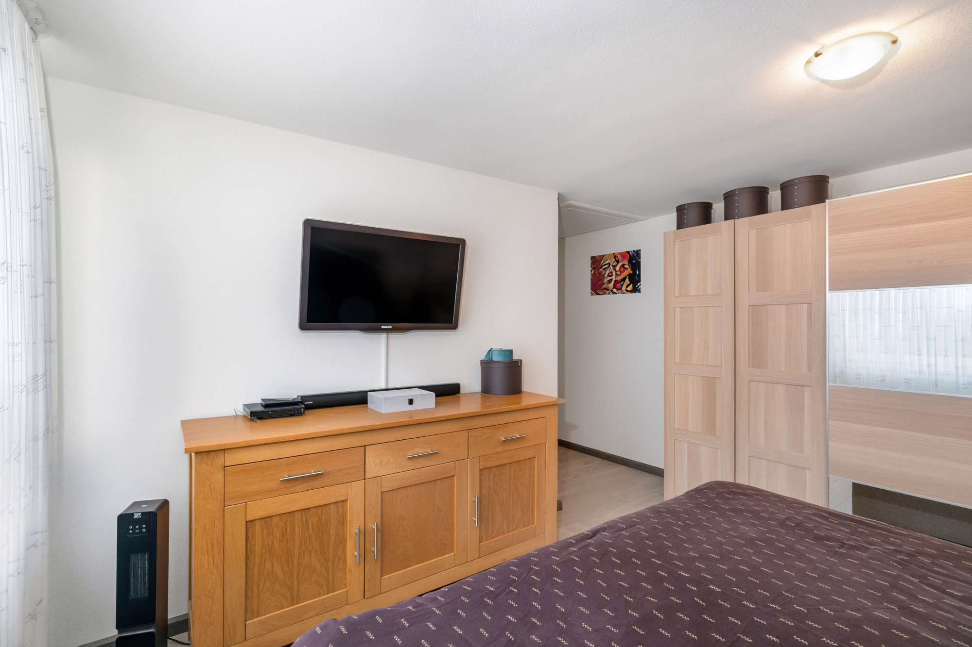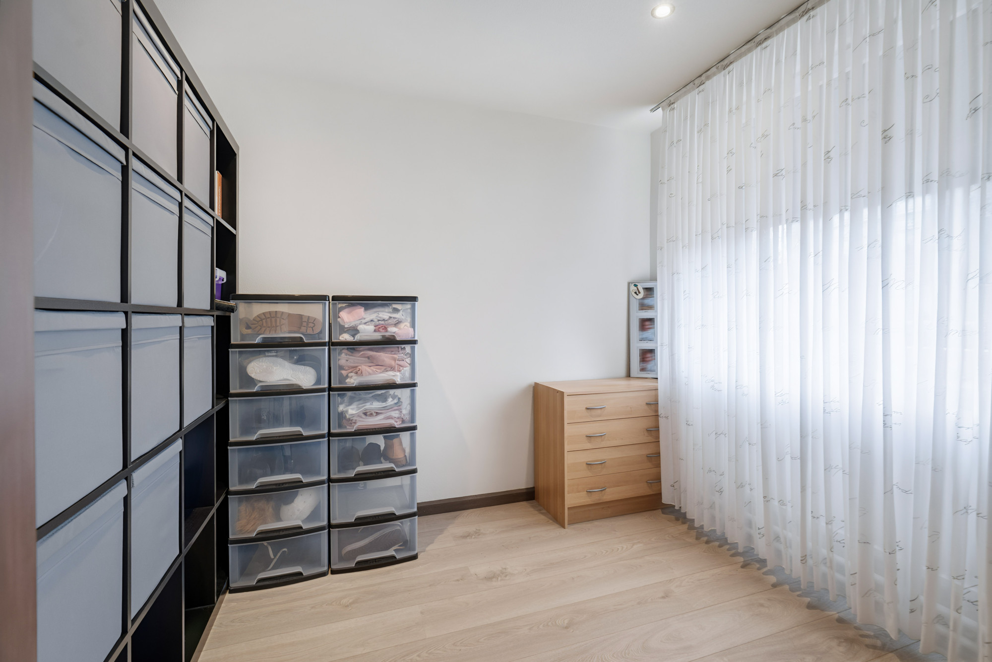 De overloop is ruim van opzet en beschikt over een grote garderoberuimte. Je vindt op deze verdieping twee slaapkamers, beide voorzien van een nette laminaatvloer.