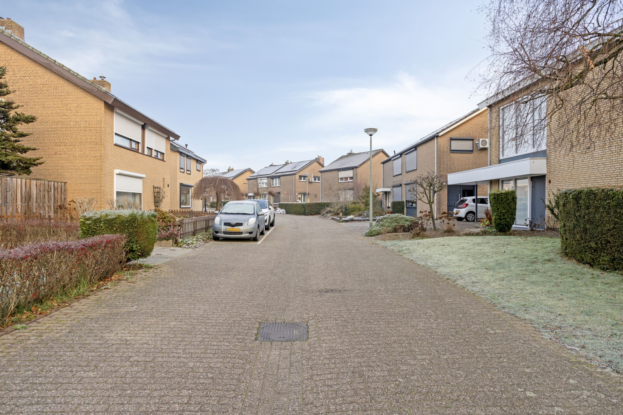 De oprit biedt parkeergelegenheid aan meerdere voertuigen op eigen terrein.