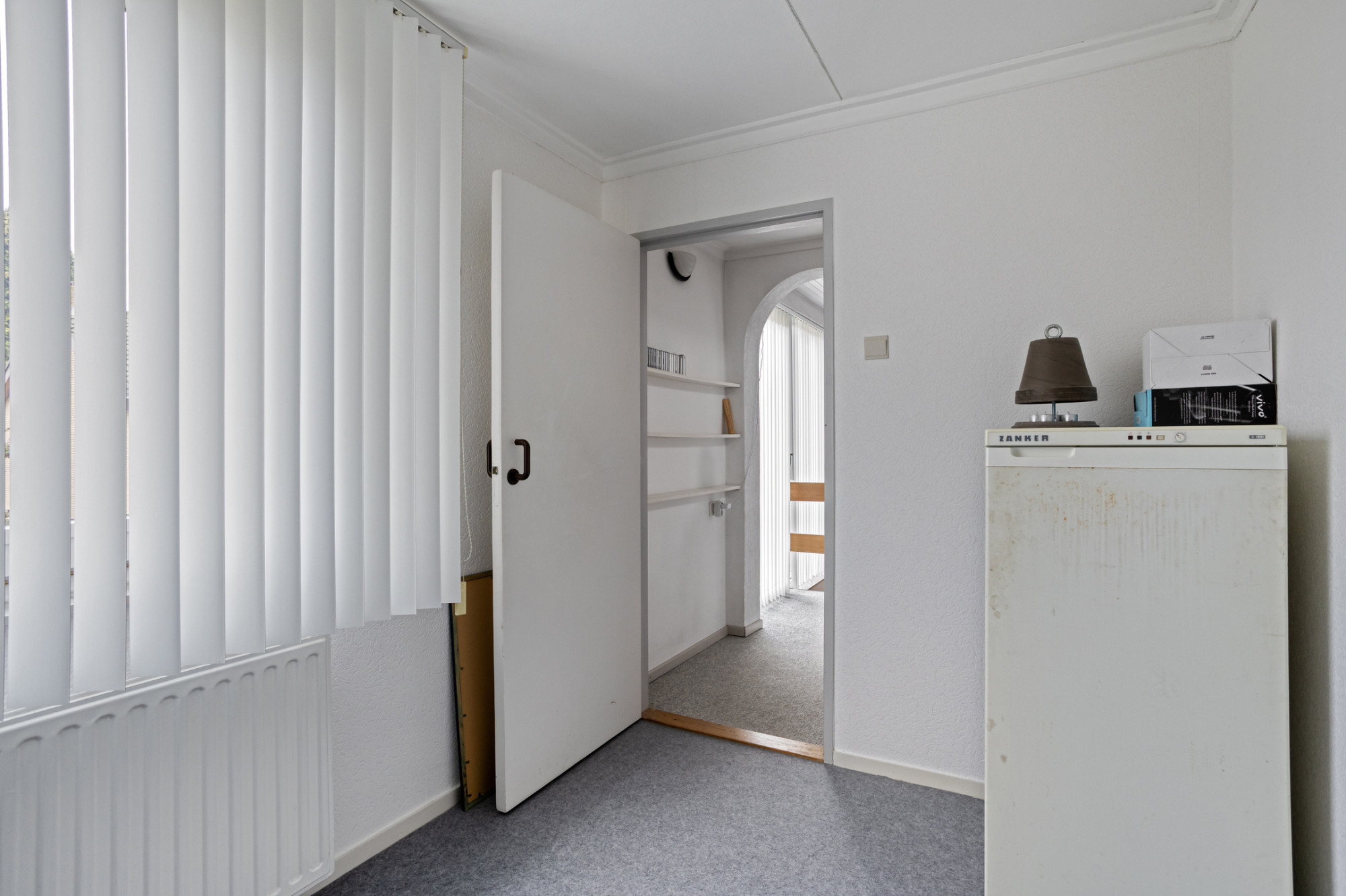 De twee slaapkamers aan de voorzijde van de woning zijn respectievelijk in gebruik als logeerkamer en bergkamer.