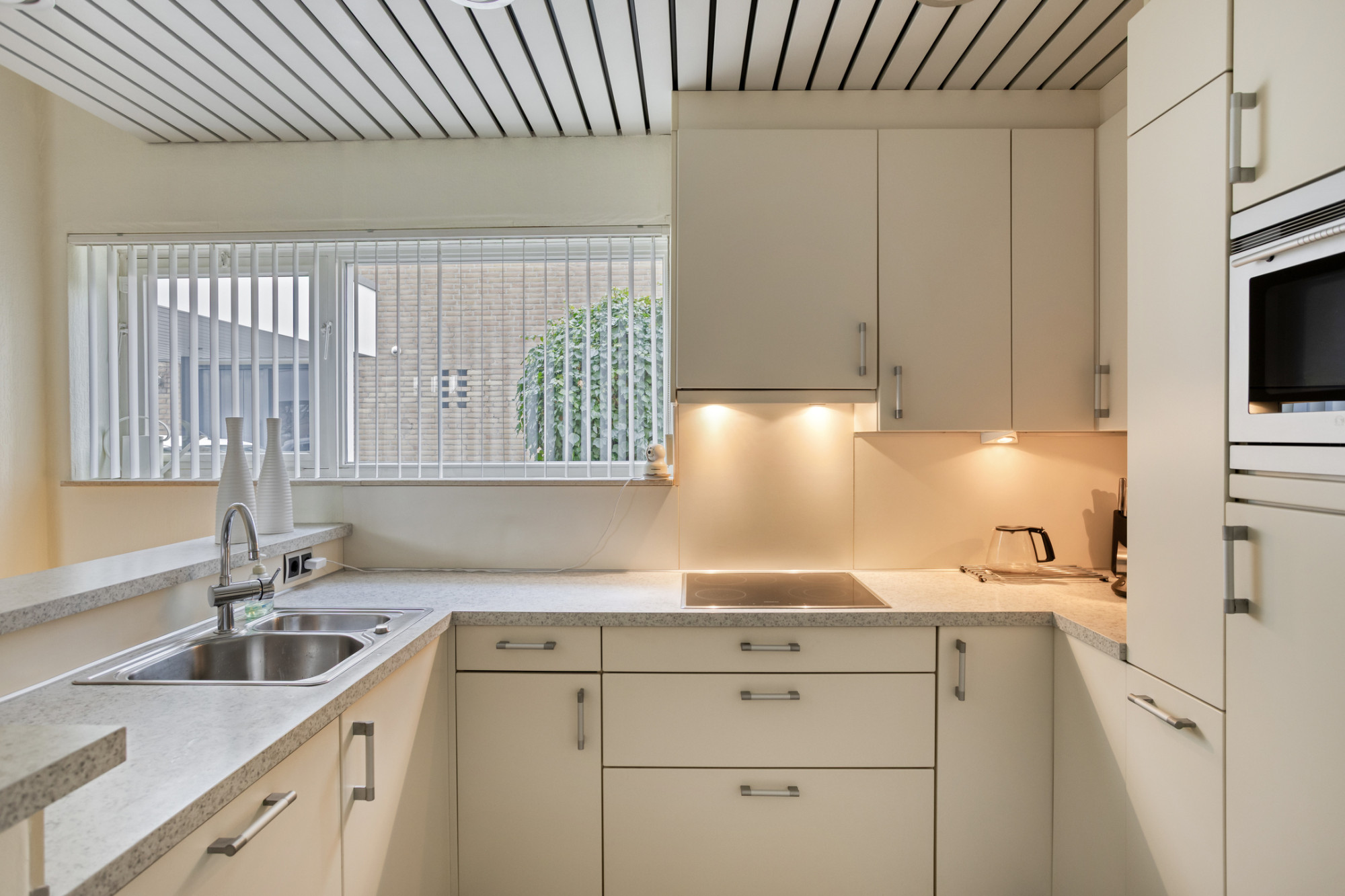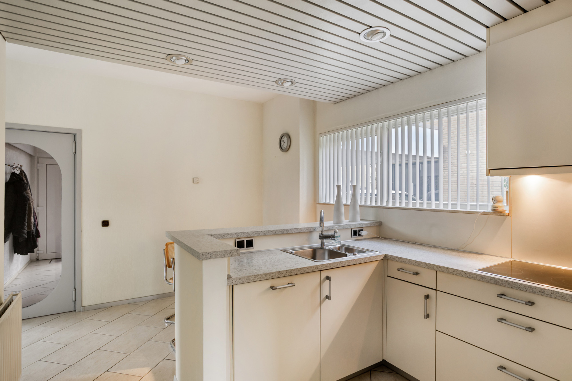 * EIGENTIJDSE INBOUWKEUKEN IN CREME-WIT MET RVS-GREPEN VOORZIEN VAN APPARATUUR