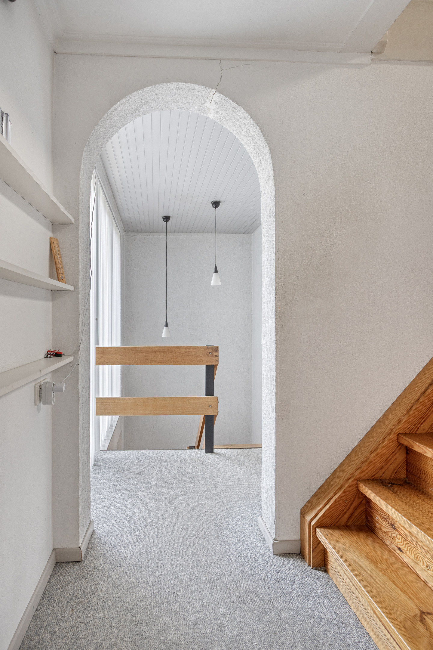 De overloop biedt toegang tot de 4 slaapvertrekken en de badkamer. Er is een vaste trap naar de zolder.