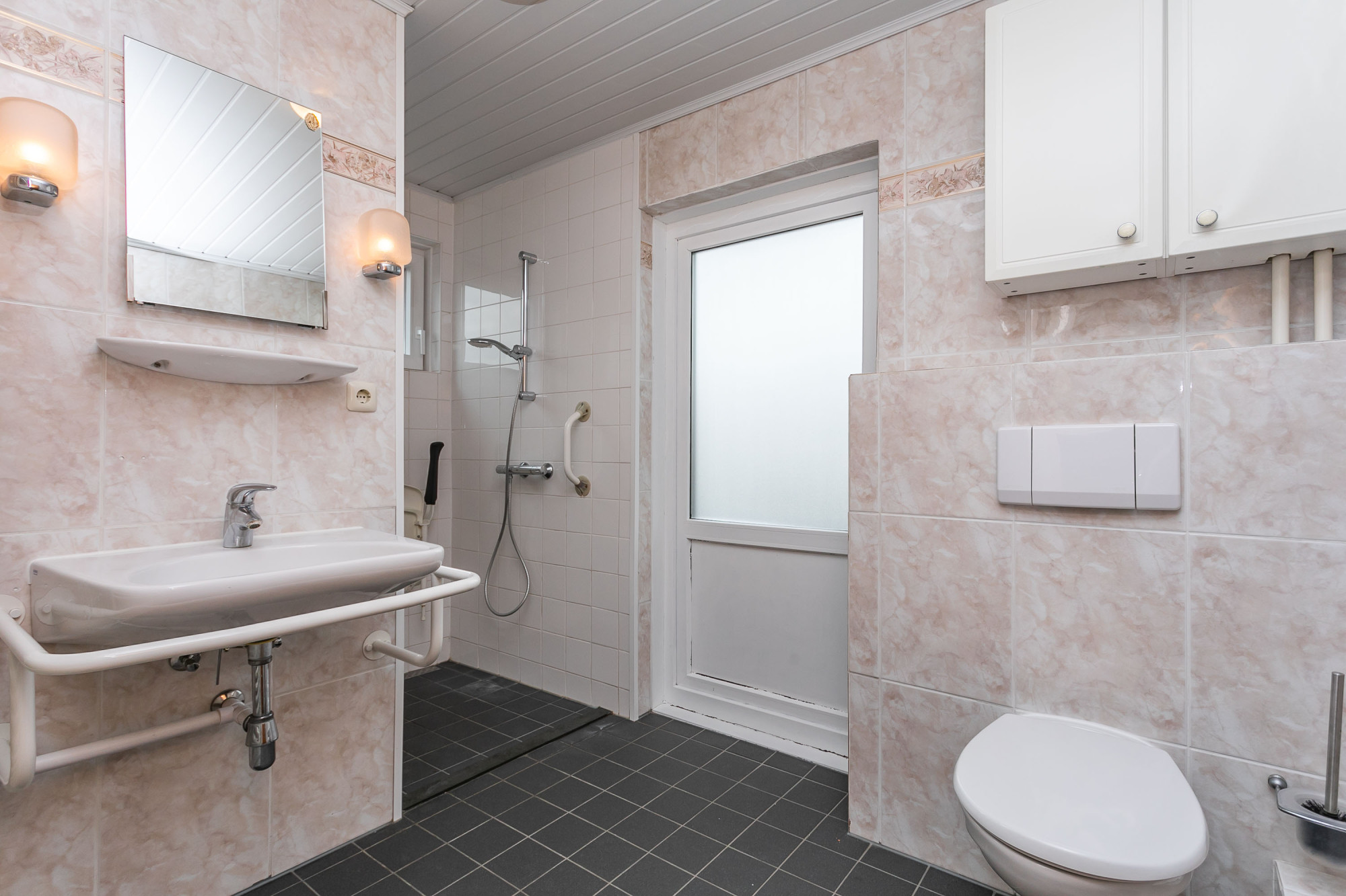 De naastgelegen badkamer is voorzien van een vaste wastafel / inloopdouche en tweede toilet. Loopdeur naar het balkon aan de voorzijde.