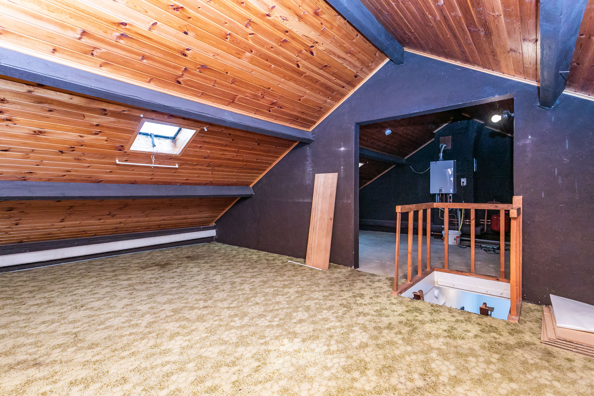Ruime zolder onder de eenvoudig geïsoleerde dakconstructie, bereikbaar middels een vlizotrap. Mogelijkheid tot het realiseren van een vaste trap en een extra kamer. Standplaats voor de Remeha Avanta CV-Combiketel (Bouwjaar 2015 / Eigendom).
