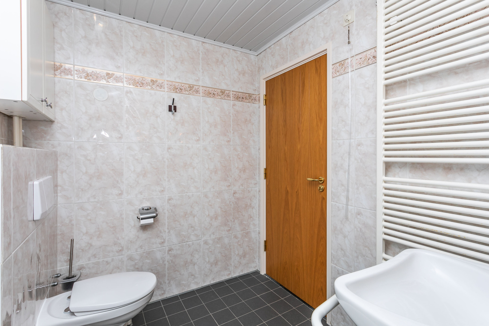 Op de begane grond bevindt zich tevens een geheel betegeld gastentoilet met staand closet.