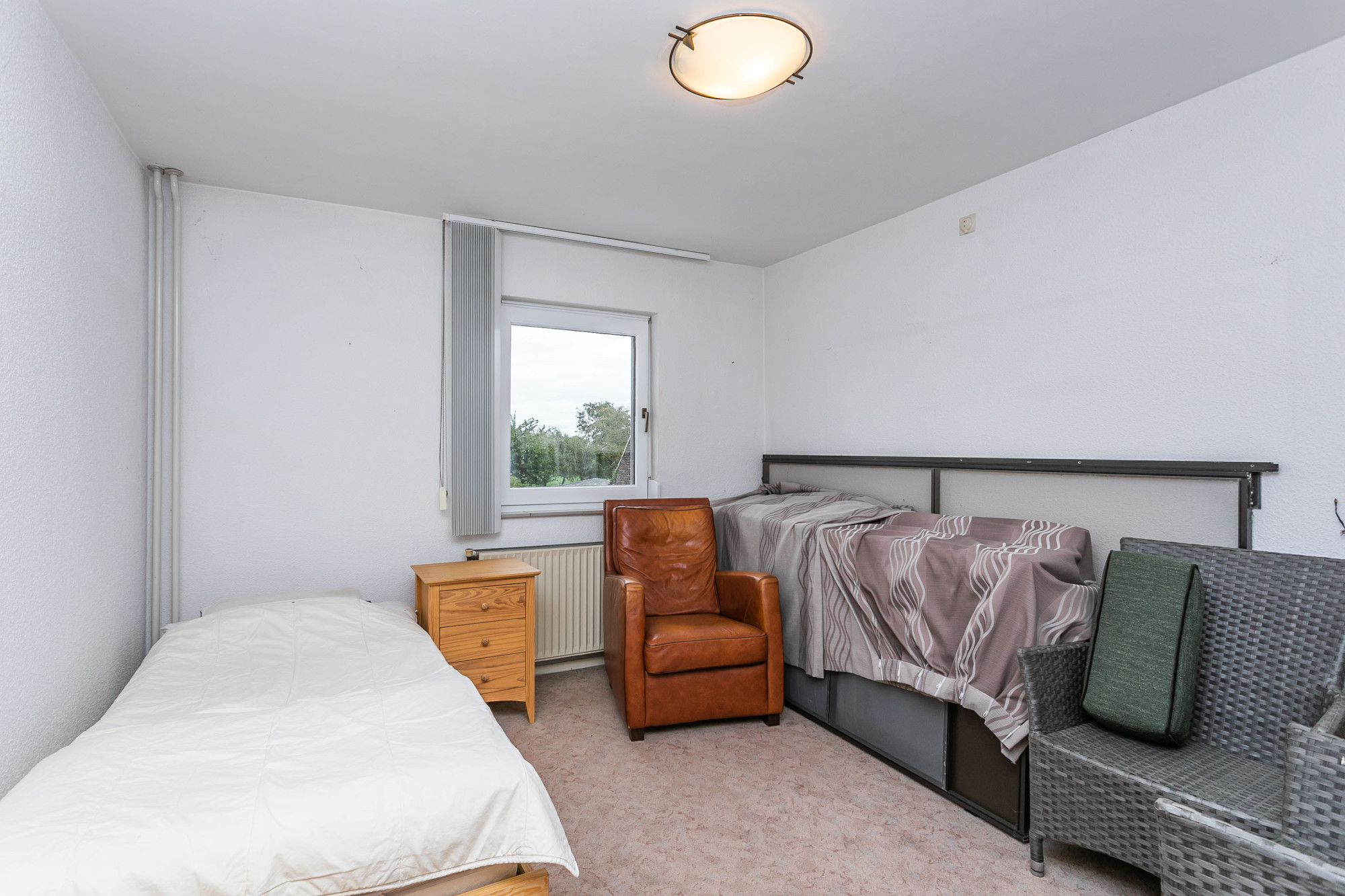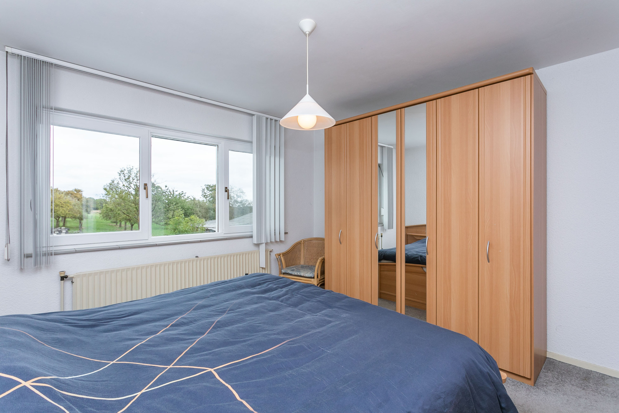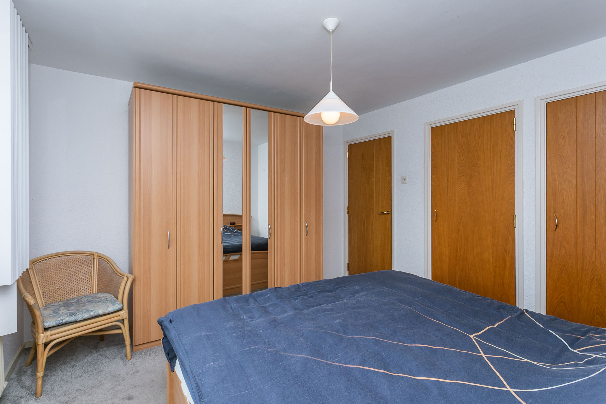 De slaapkamer rechtsachter doet dienst als logeerkamer. De hoofdslaapkamer heeft een dubbele wandkast met veel opbergruimte.