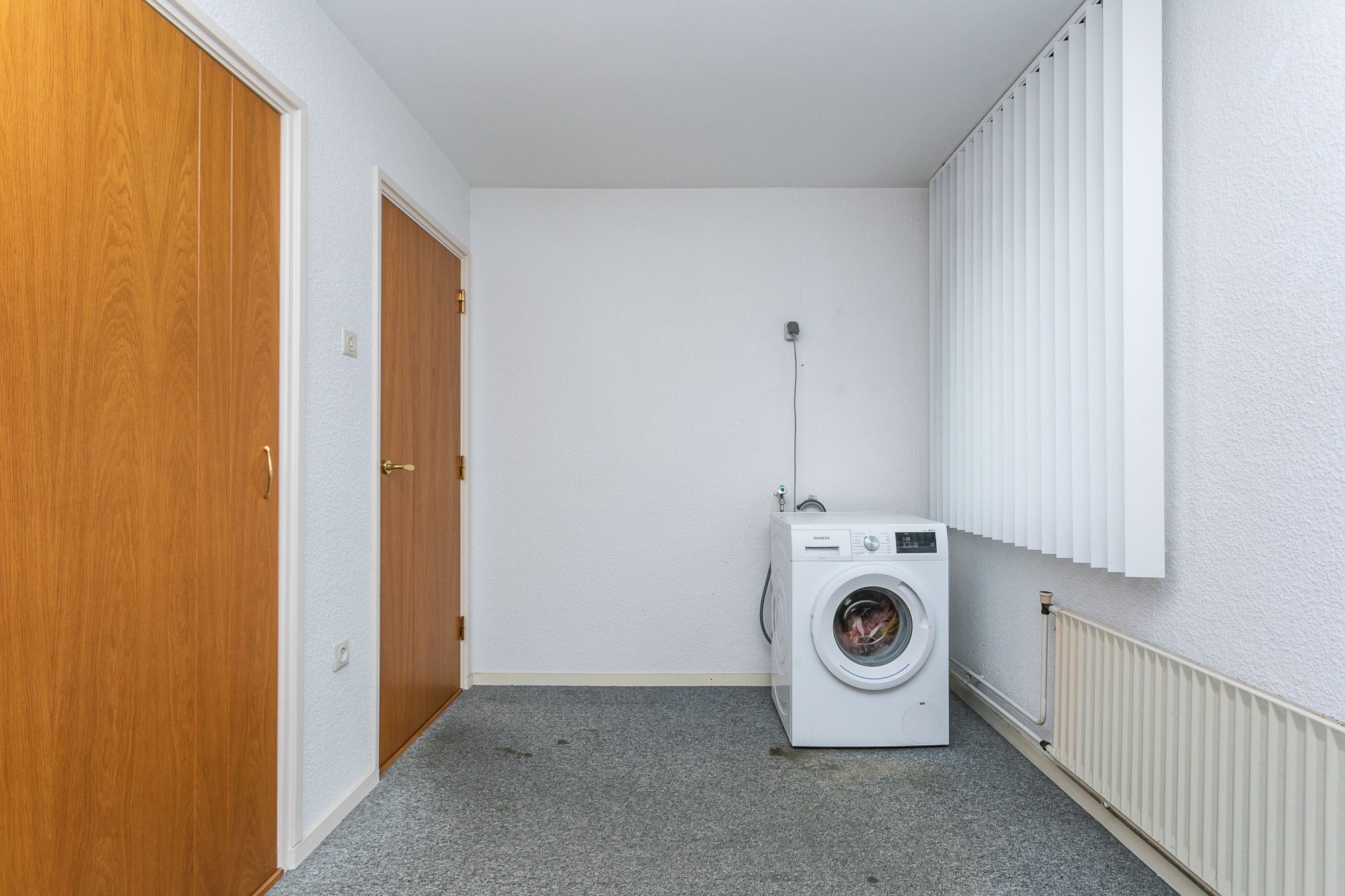 De slaapkamer aan de linker voorzijde is in gebruik als kleedkamer, heeft een dubbele wandkast en witgoedaansluitingen voor wasmachine/droger.