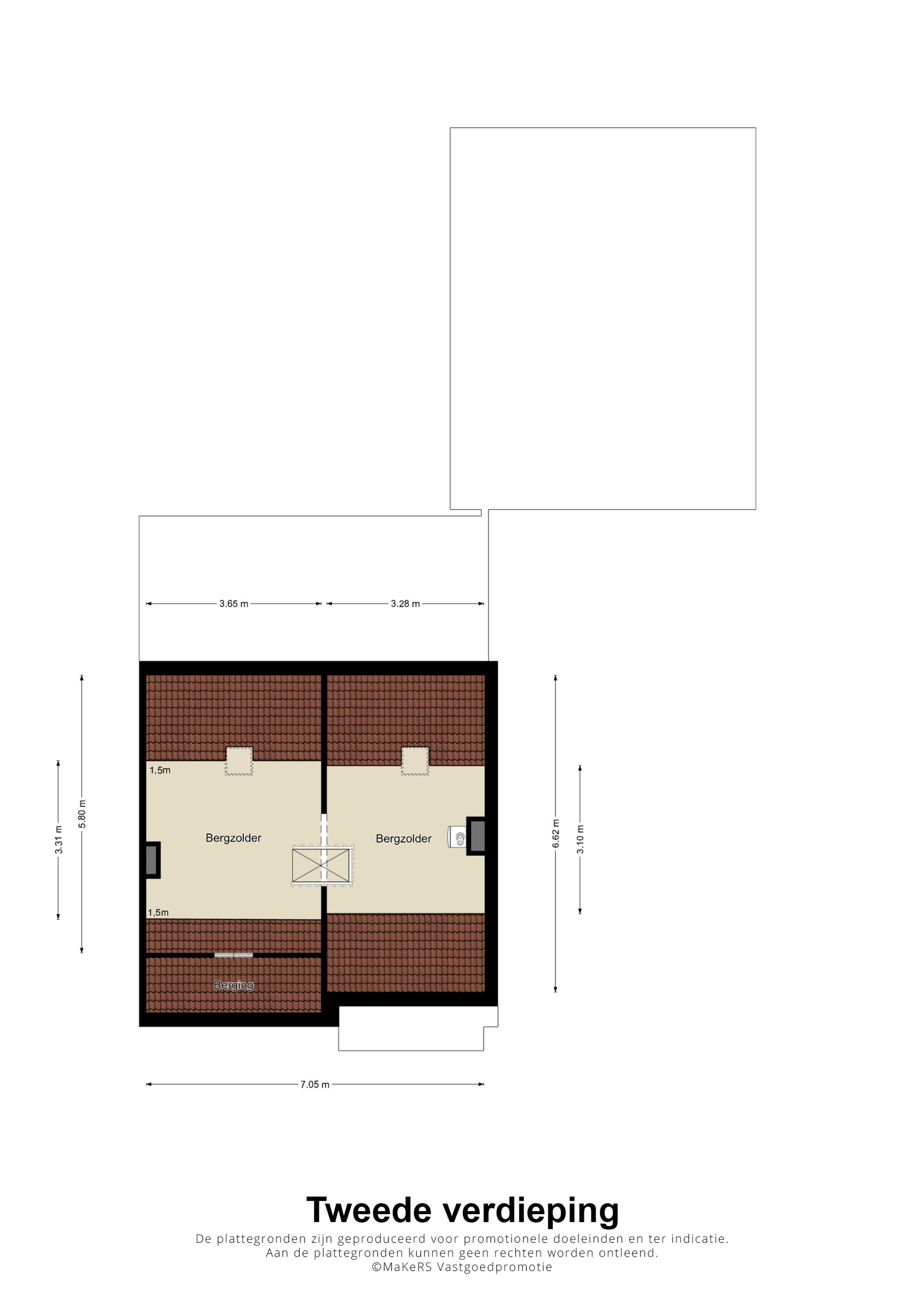 De bergzolder, bereikbaar via een vlizotrap, beschikt over een eenvoudig geïsoleerde dakconstructie en biedt mogelijkheden voor het realiseren van een vaste trap en extra kamer. Hier bevindt zich tevens de Remeha Avanta CV-combiketel. Extra opslagruimte is beschikbaar in de provisiekelder.