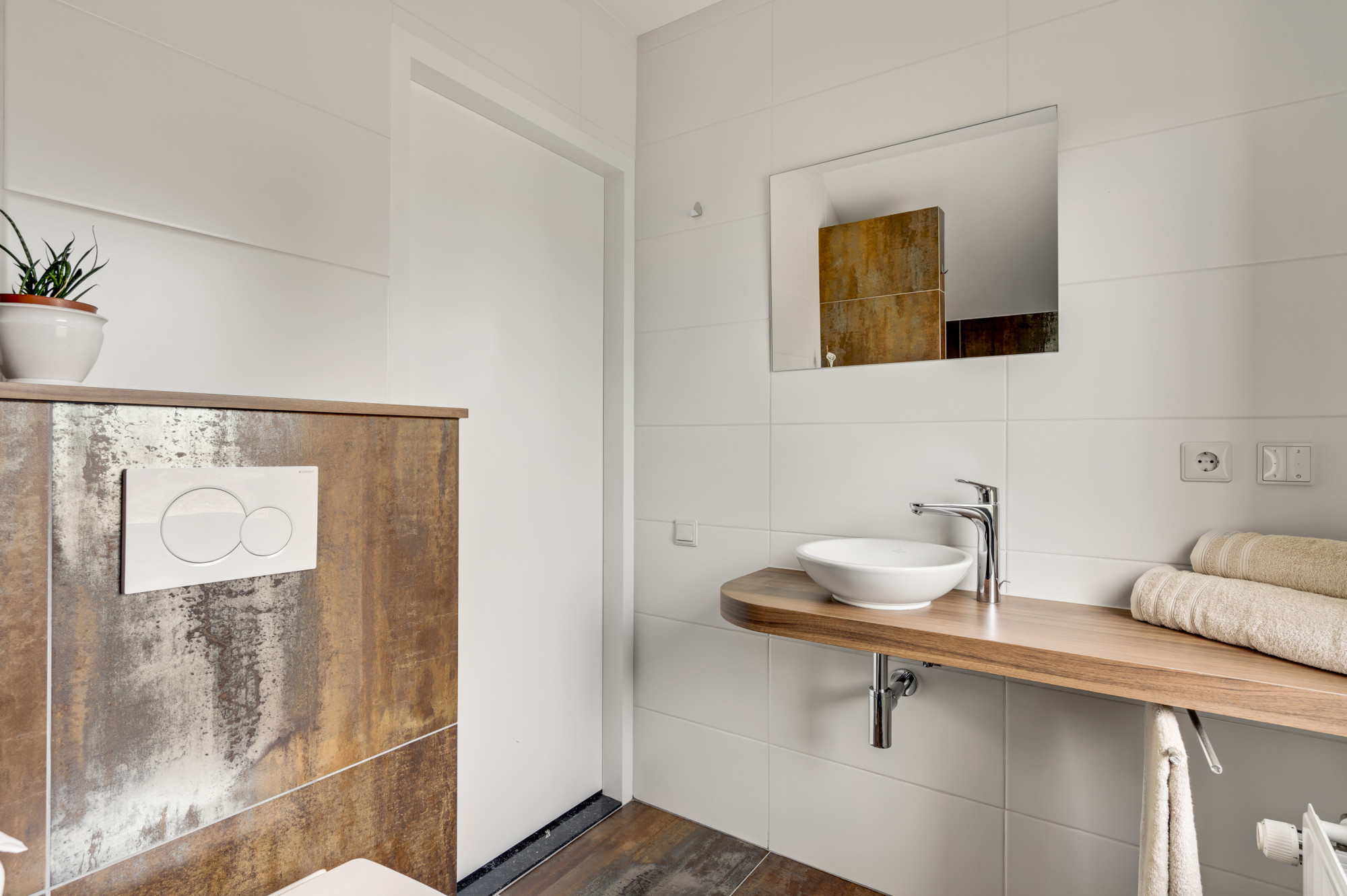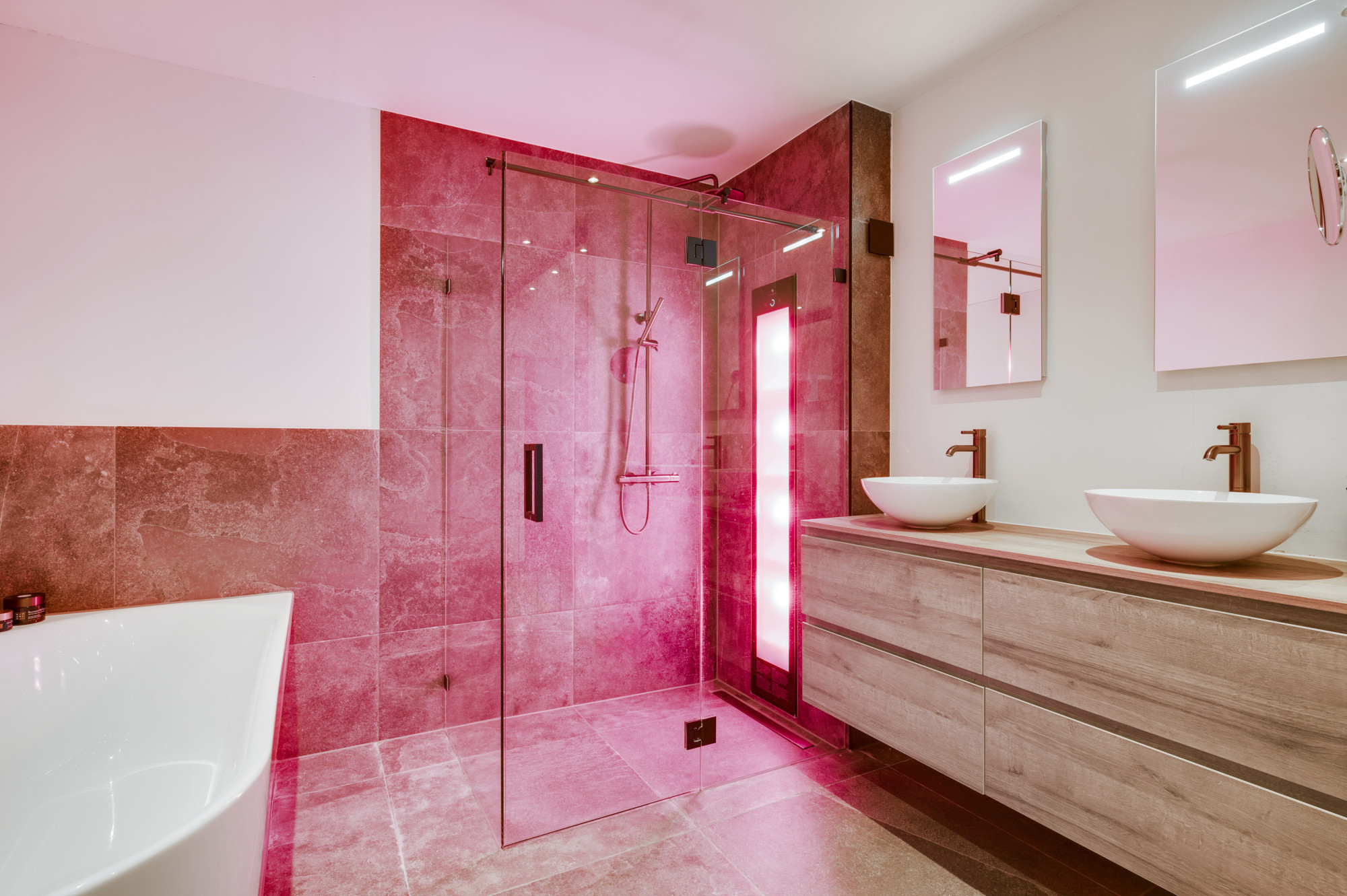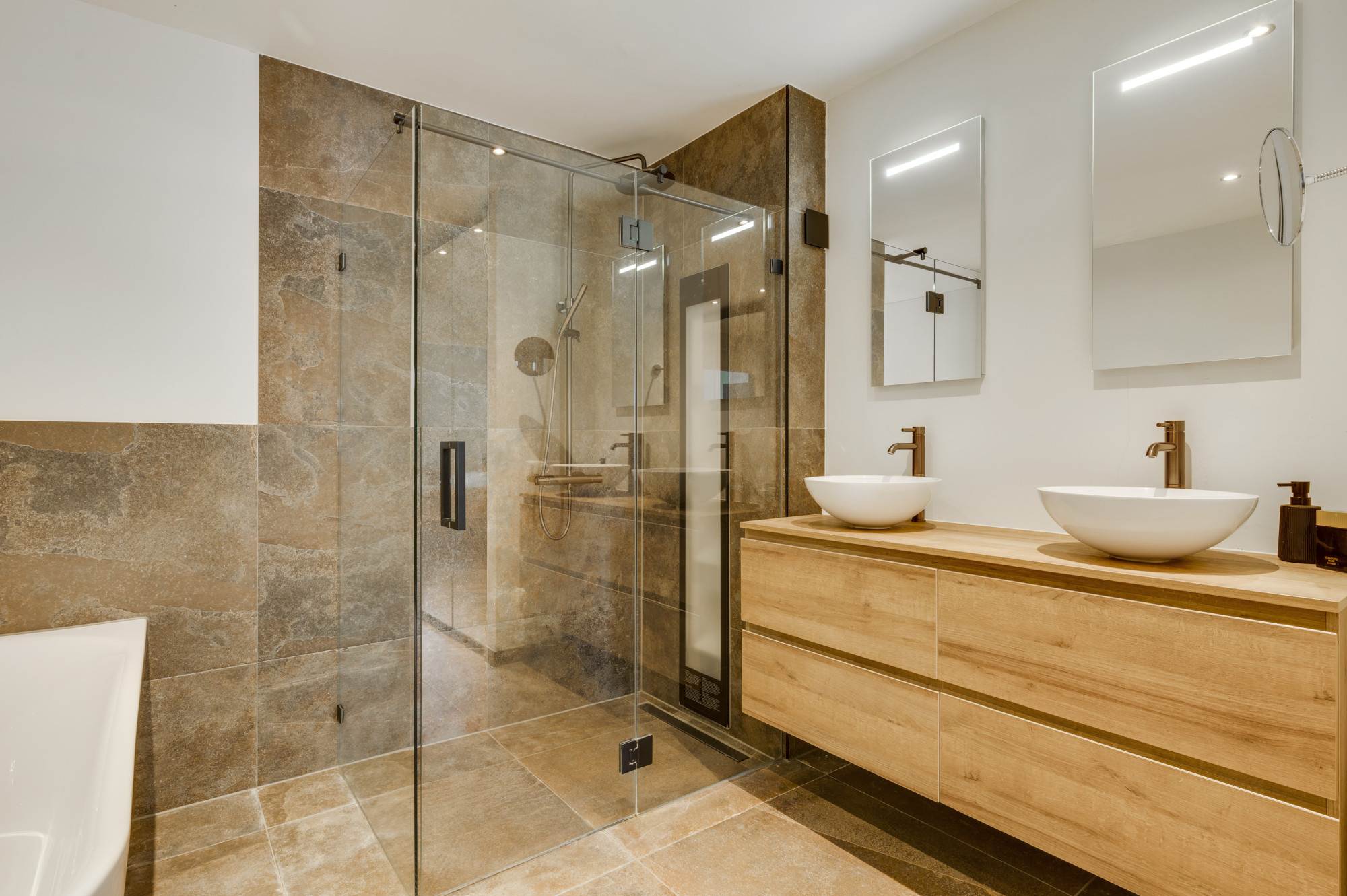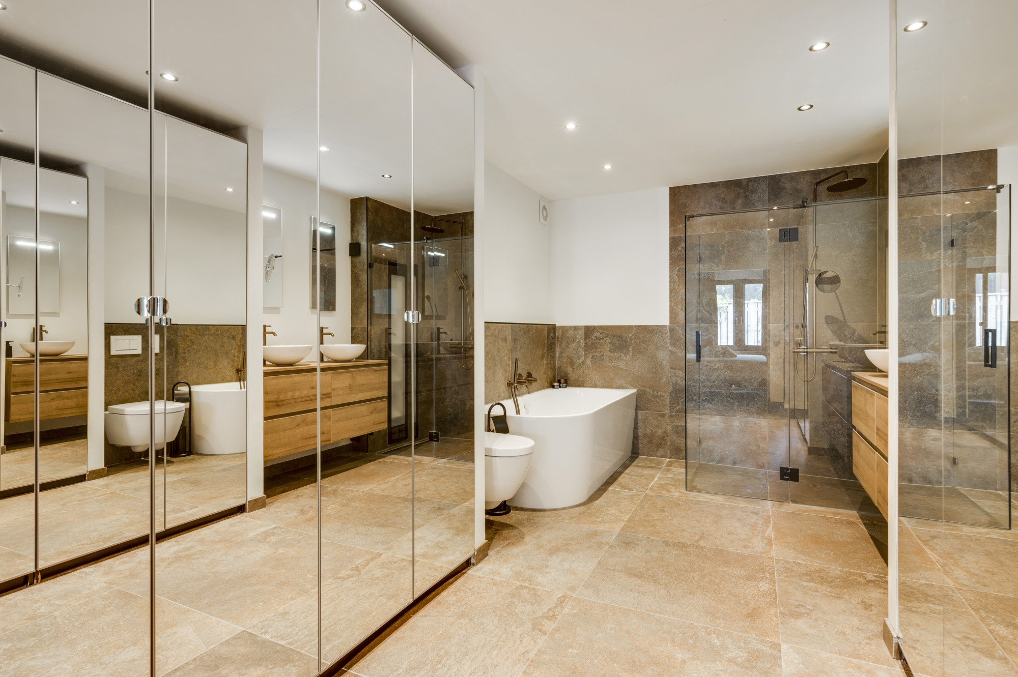 Op de eerste verdieping bevinden zich nog twee comfortabele slaapkamers en een moderne tweede badkamer met inloopdouche, wastafel en een zwevend toilet. Ook op deze verdieping is een airco (Daikin) aanwezig, wat zorgt voor extra comfort tijdens warme en koele dagen.