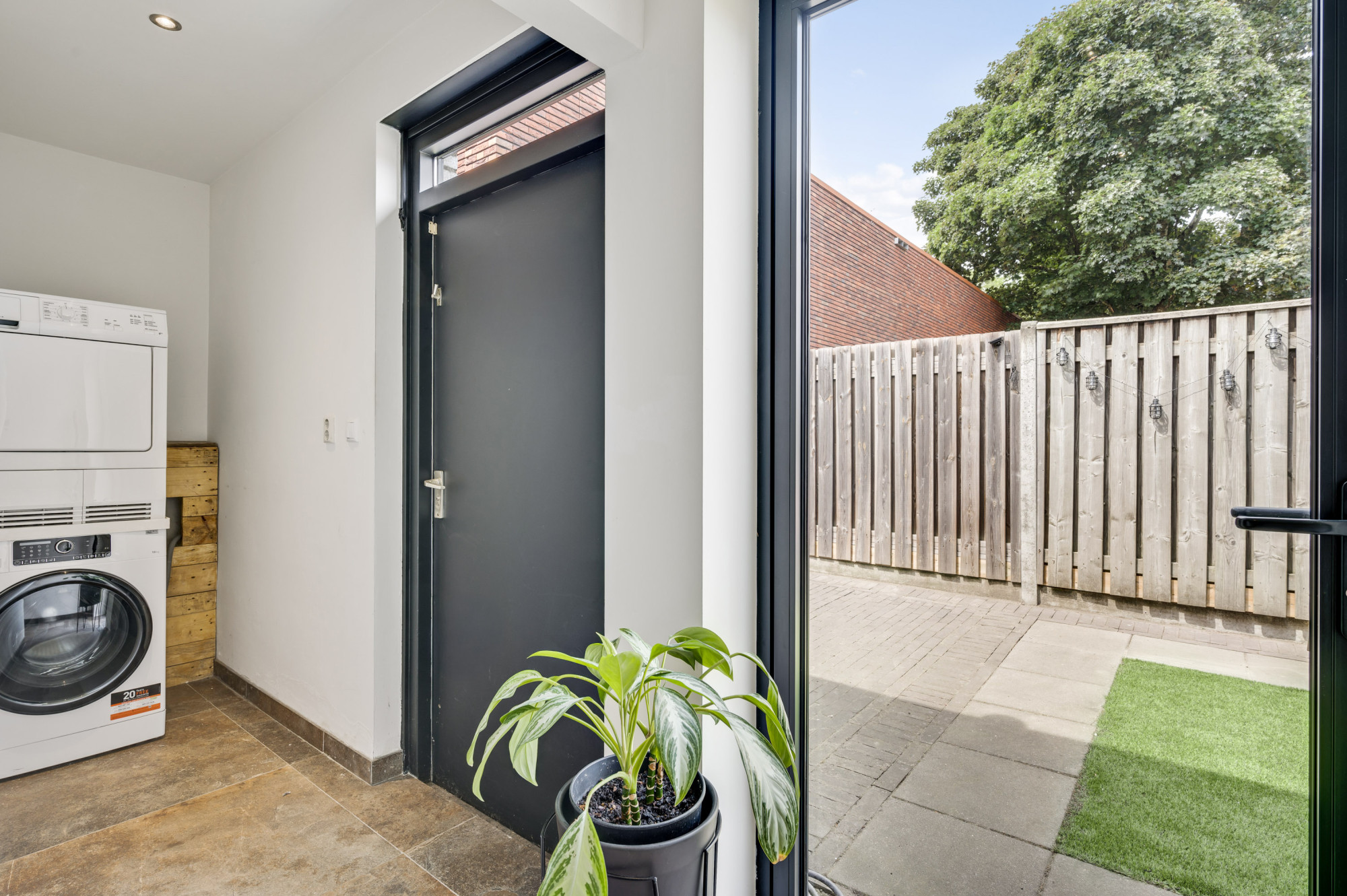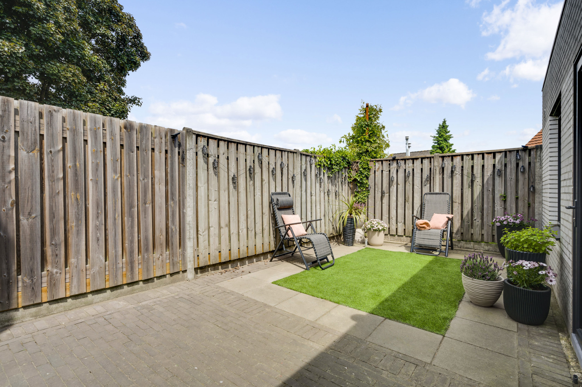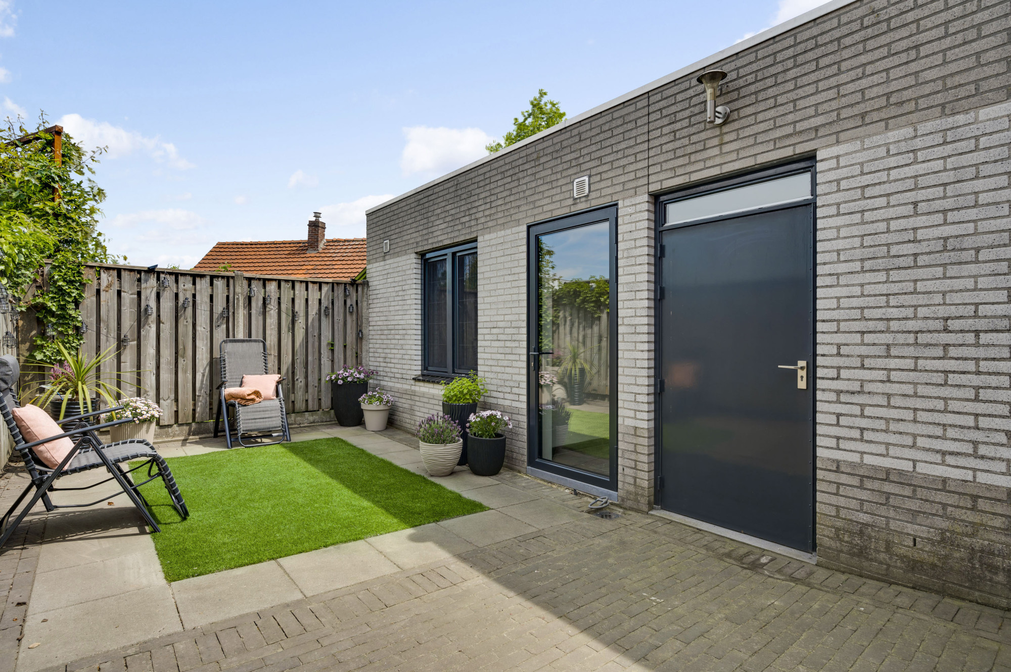 De achtertuin is fraai aangelegd met onder andere kunstgras, terras en biedt optimale privacy. Dankzij de ligging geniet u hier van de middag- en avondzon. Aan de voorzijde van de woning is een gezellig, overdekt tweede terras ingericht waar u ook in de ochtend heerlijk in het zonnetje kunt ontbijten. De tuin is ook bereikbaar via een vrije achterom aan de zijkant van het perceel met tevens een afsluitbare poort. Of u nu in de zon wilt ontspannen of juist beschut wilt genieten van het buitenleven – deze tuin biedt het allemaal.