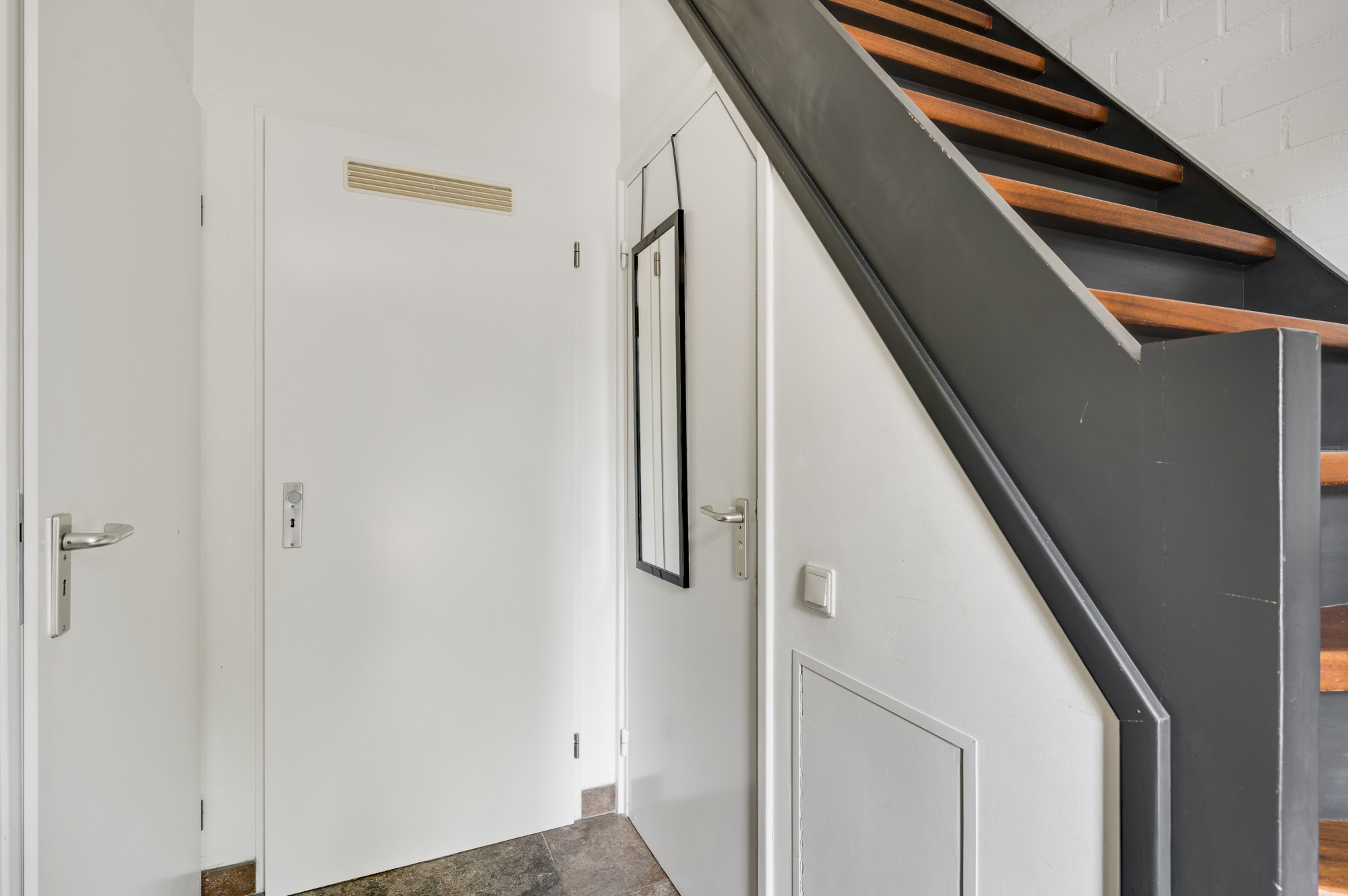 Een vlizotrap biedt toegang tot de bergzolder, ideaal voor het opslaan van seizoensgebonden spullen.